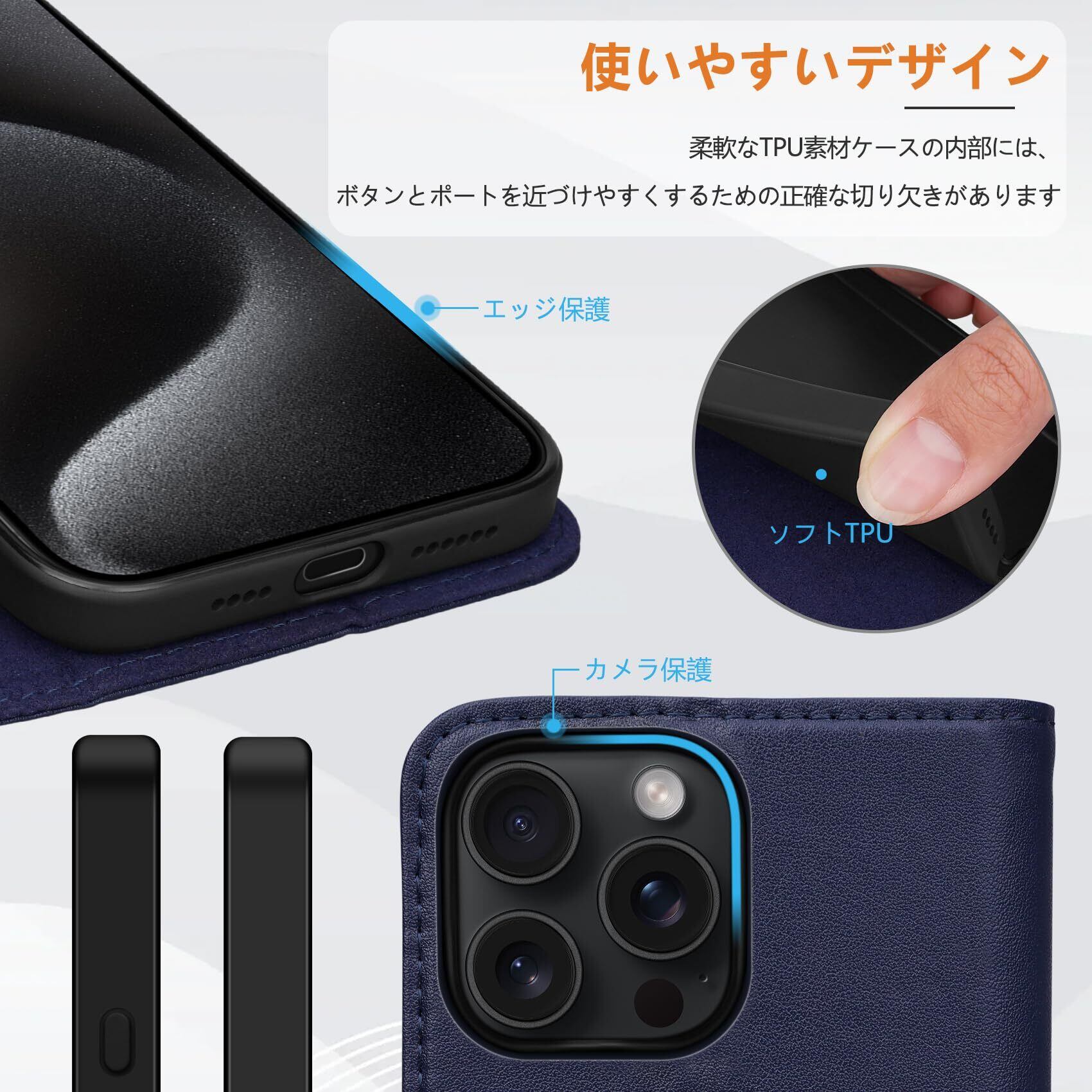Rssviss iPhone 15 Pro ケース 手帳型 本革 MagSafe対応 iPhone15 Pro 手帳型ケース アイフォン15 プロ 本革ケース スキミング防止 カード収納 スタンド機能 スマホケース 内蔵マグネット ベルトなし 牛革 財布型 全面保護 RFIDブロッキング機能 iPhone 15 Pro 専用 MagSafe対応 本革 手帳型ケース 6.1inch ネイビー