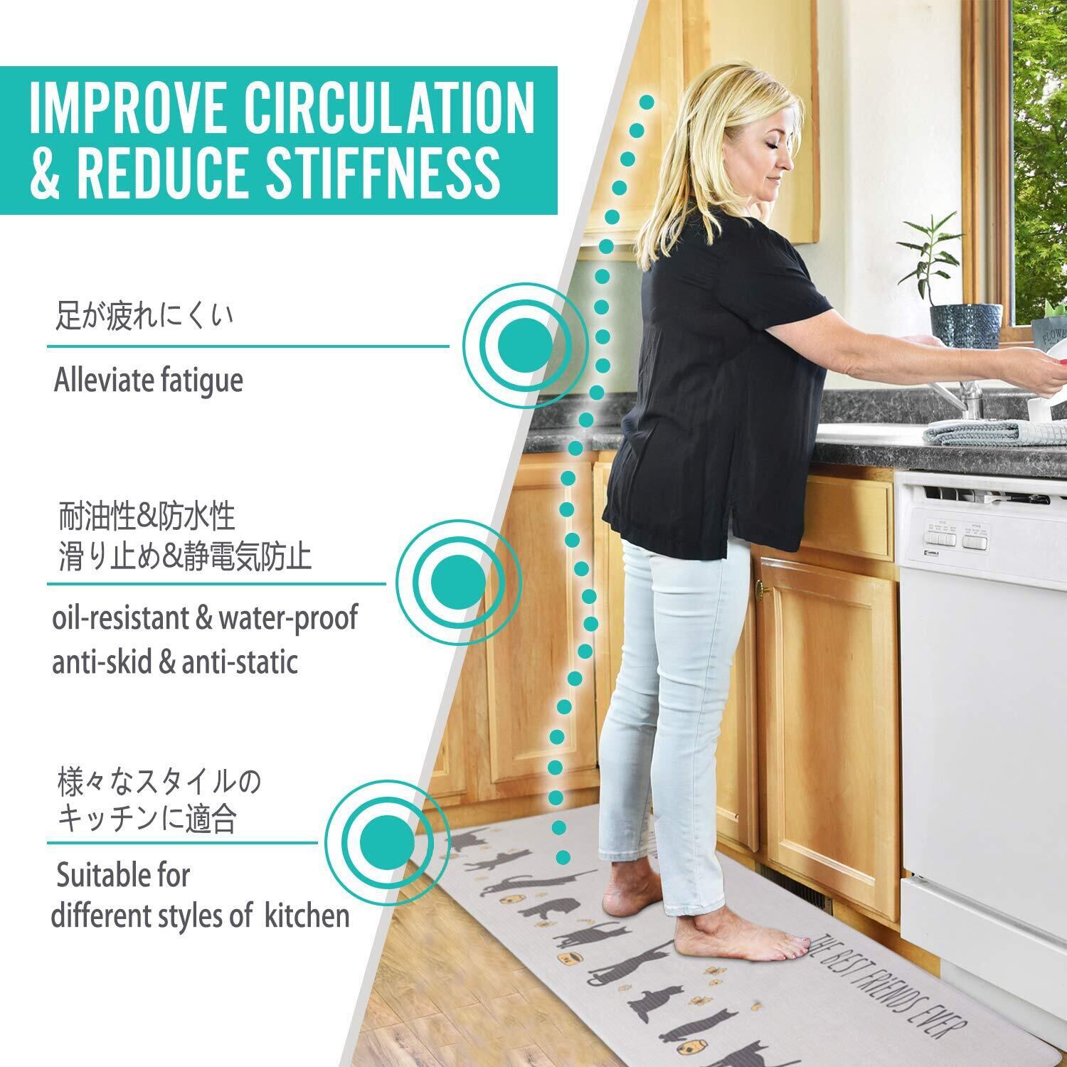 Ashmore キッチンマット 拭ける台所マ ット ずれない PVCロング床マット 撥水 おしゃれ 滑り止め 抗菌 防炎 厚さ10mm お手入れ簡単 約45cm*180cm 猫