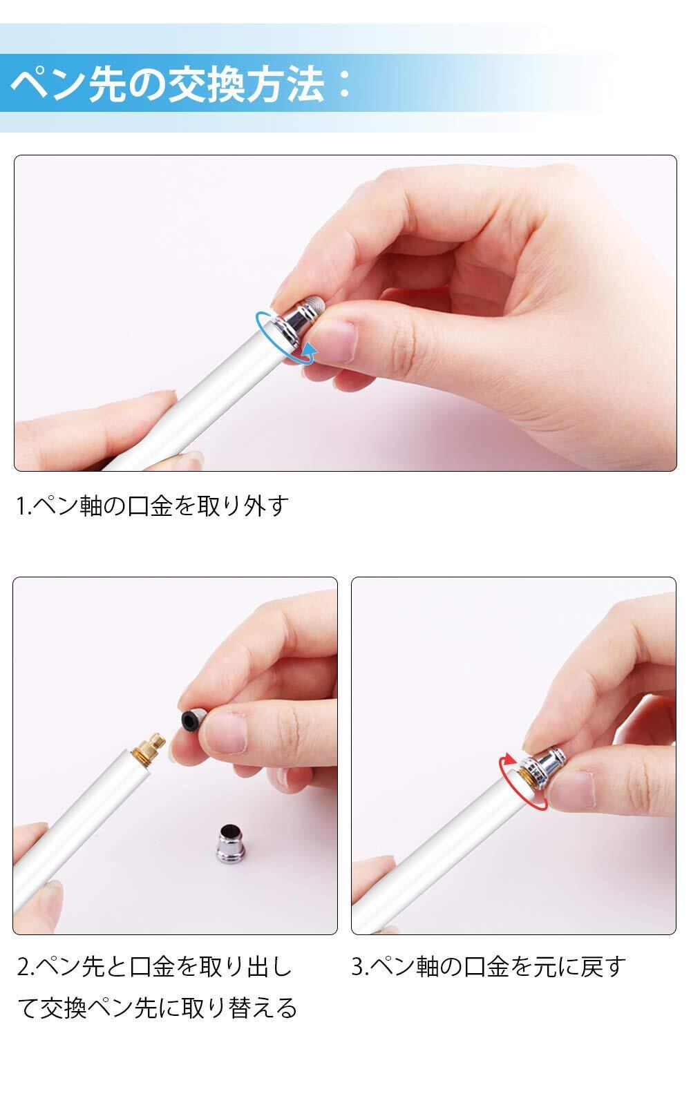 【タッチペン・デザイン】ペン本体は高品質アルミニウムを採用します。消耗しやすい素材ではなく、一本のペンは長く使えます。細かい文字、リンク等も正確にタッチできます!ペン先は導電繊維の素材を採用します。タッチペンを利用する場合は指紋などがスクリーンに残ることがなくなります。