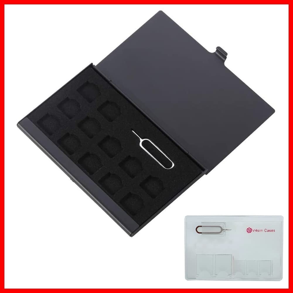 NanoSIMカード収納用アルミケース 12枚収納 取り出し リリースピン 紛失防止 持ち運び ケース 出張 海外旅行 付属 PVC SIMカ収納バッグ (ブラック)