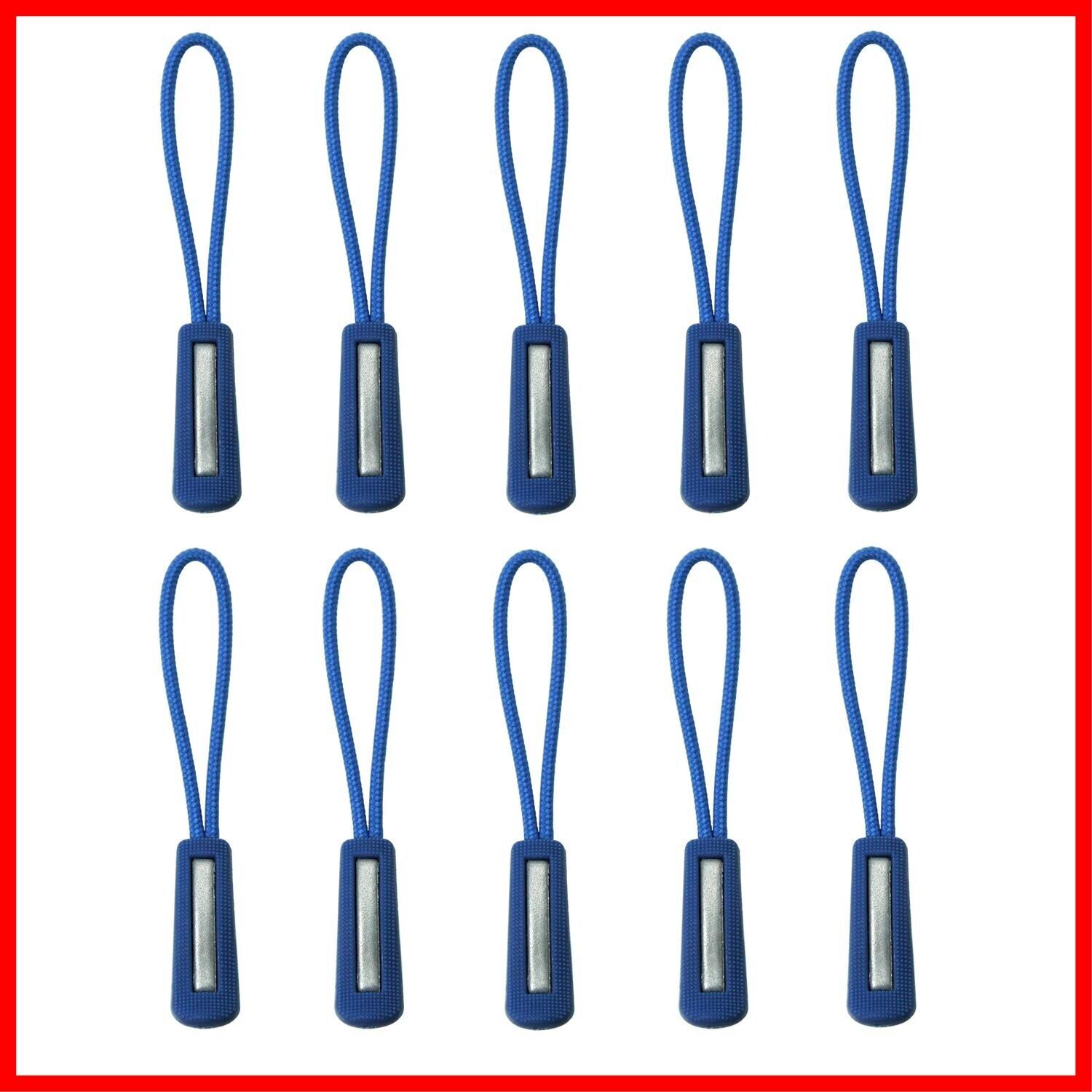 Loople ジッパープル 反射材付き ファスナー チャック 楽々 開閉 取り付け簡単 つかみやすい ノンスリップ ジッパータブ プルコード 5カラー 各10本セット (ブルー)