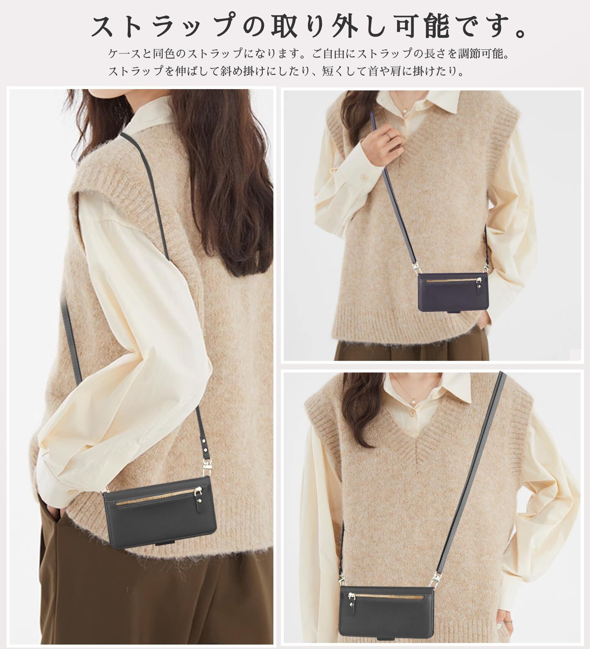 【ファッショナブルなデザイン、多用途】:調節可能なショルダーストラップデザインにより、ケースを肩や首に掛けることができ、ファッショナブルで実用的です。 犬の散歩中、買い物中、荷物が多い時でも、簡単に携帯電話を使用することができます。 また、ケースには横置きスタンド機能が付いており、動画視聴や読書などのシーンに適しており、より快適な使用体験を提供します。