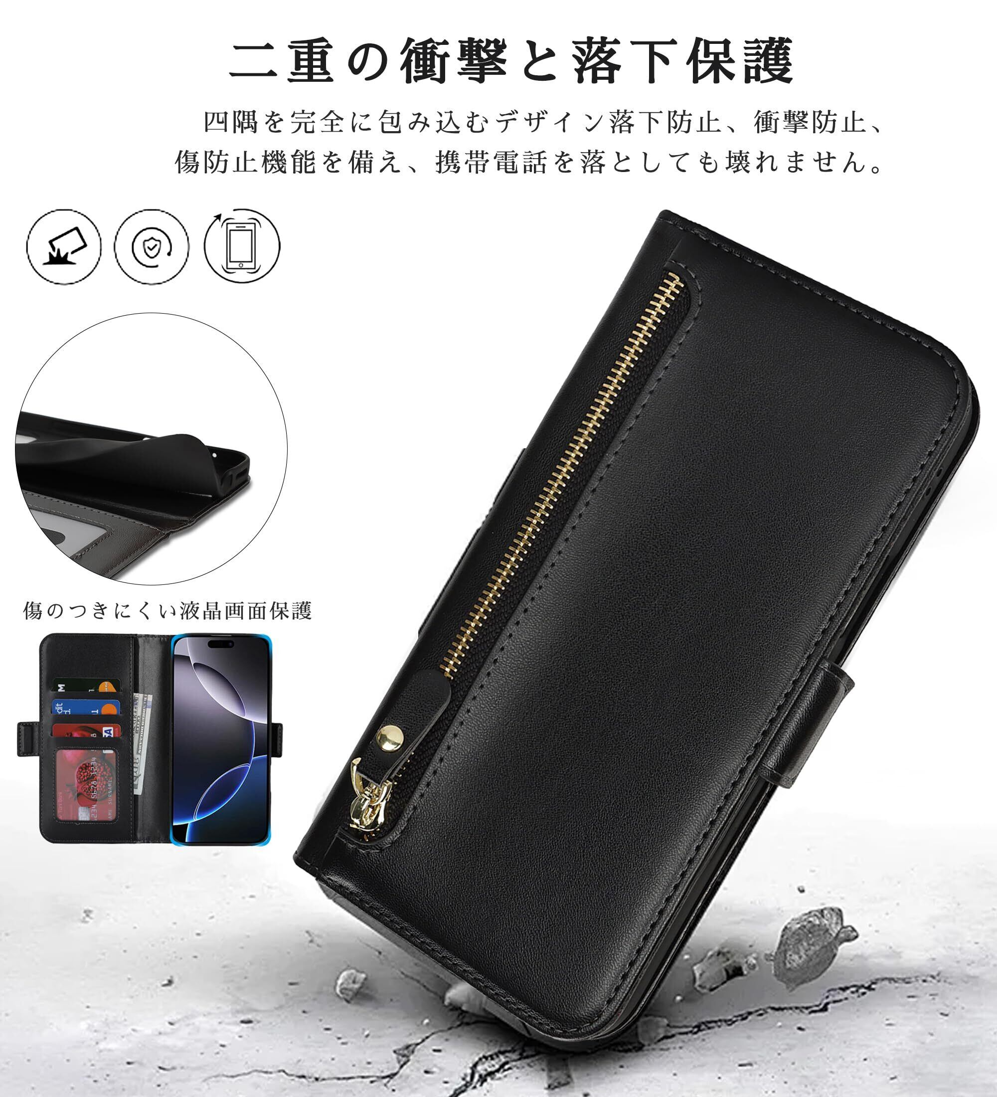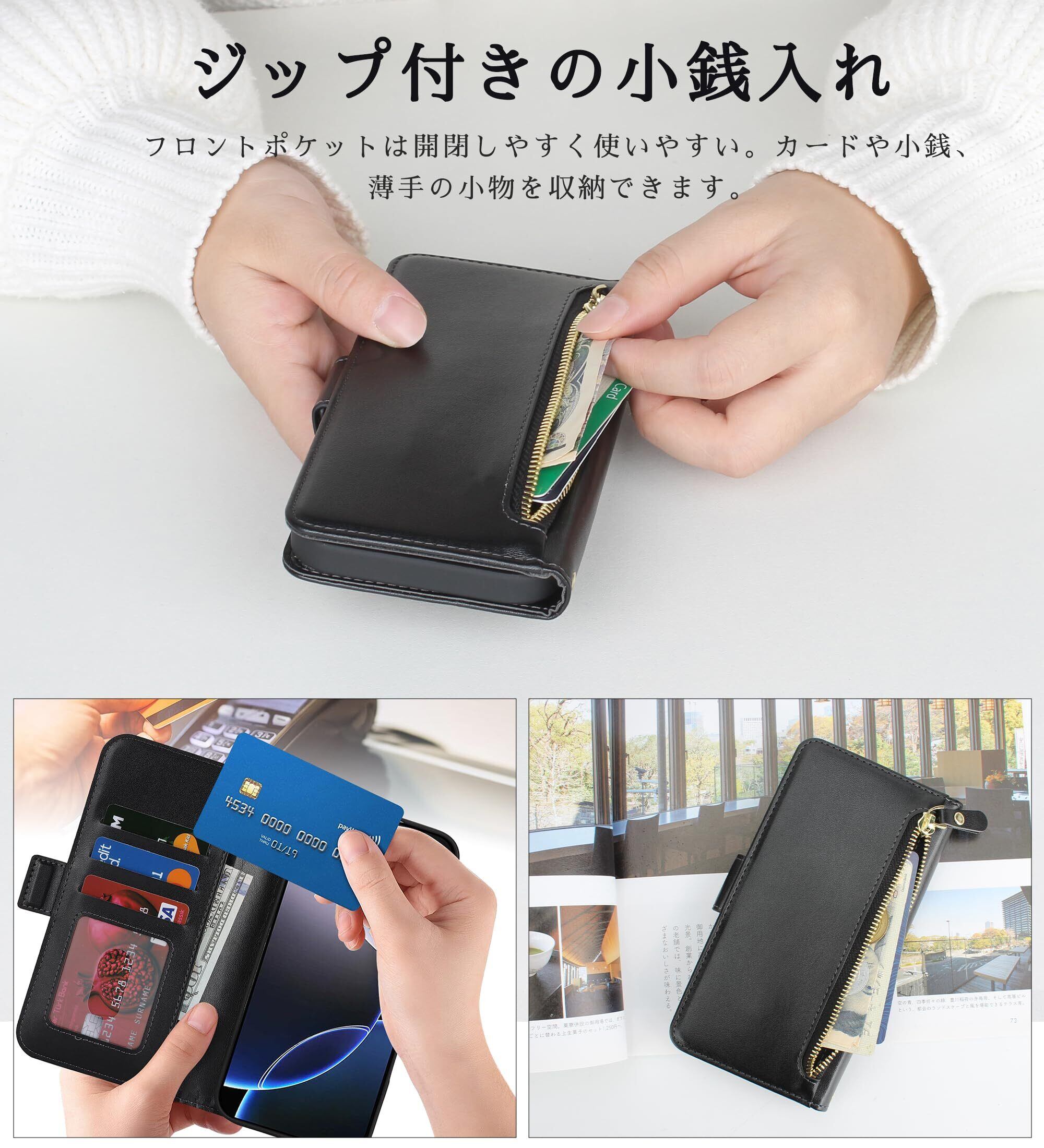 【多機能収納設計、実用的で便利】:携帯電話ケースショルダーには、ジッパー式小銭入れ、テラー式カードホルダー、複数のカードスロットに加え、マグネット式開閉とスナップ式開閉が内蔵されており、銀行カード、交通カード、ICカード、名刺、月パス、小銭などを安全に収納することができます。 大容量のデザインは、余分な財布を持ち歩くことなく、保護ケースだけで毎日のニーズを満たすことができます。