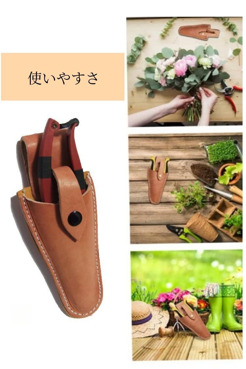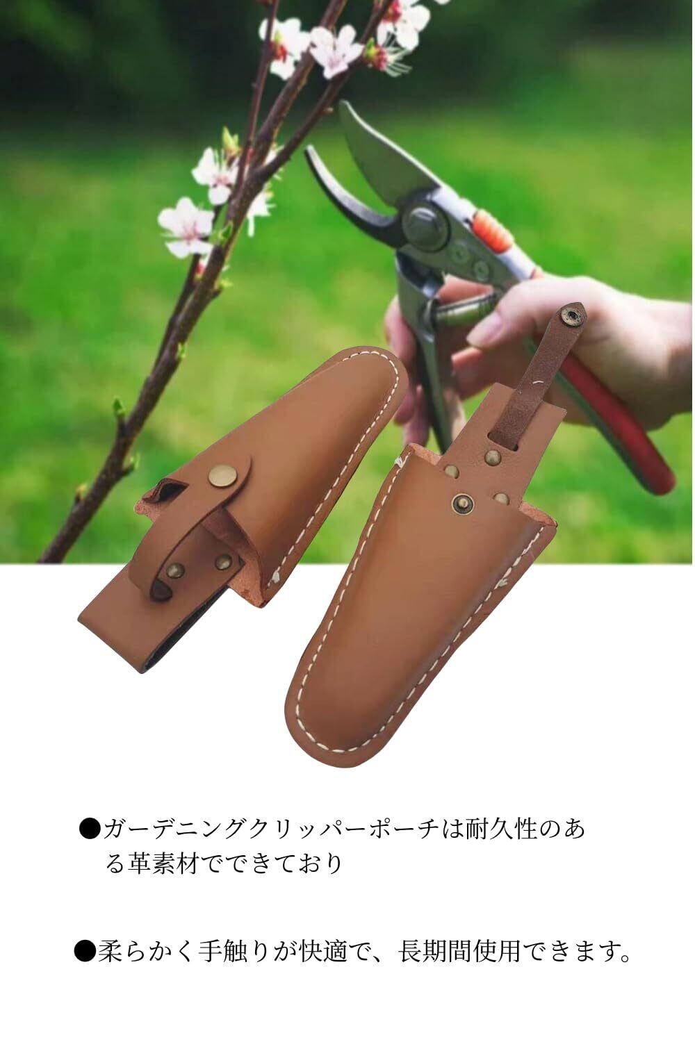 【使いやすさ】剪定ハサミを持ち運びに 以外に持ちずらい剪定ハサミを丁寧に持ち運びができる。 剪定ハサミの計上的に持ち運びずらい。不意の落下の心配がなく、使いやすく、さまざまなベルトに取り付けられ。