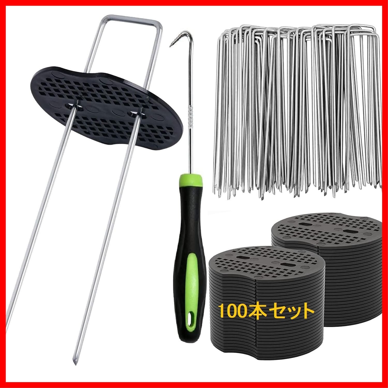 【15cm 100本セット】Uピン杭 黒丸付き 防草シート 除草シート 固定用 押さえピン 園芸用シート (15x3x15)