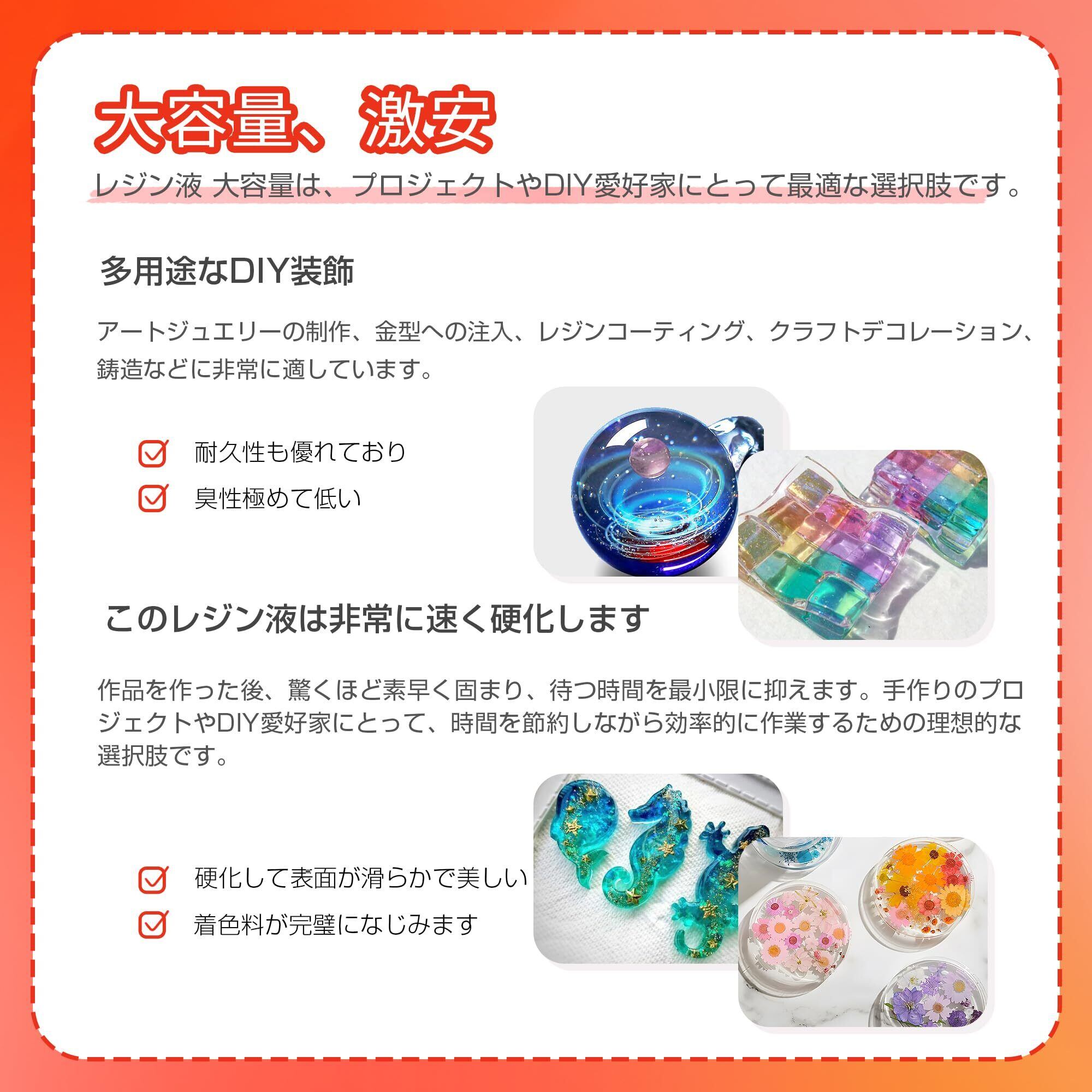 【レジン液大容量-幅広い用途とプレゼント】ProKKUV UVレジン液は、ピアス、ヘアゴム、ネックレス、キーホルダー、スマホケースなど、あらゆる種類のDIYクリスタル工芸品に非常に適しています。家族、友人、同僚などへの贈り物としても最適です。