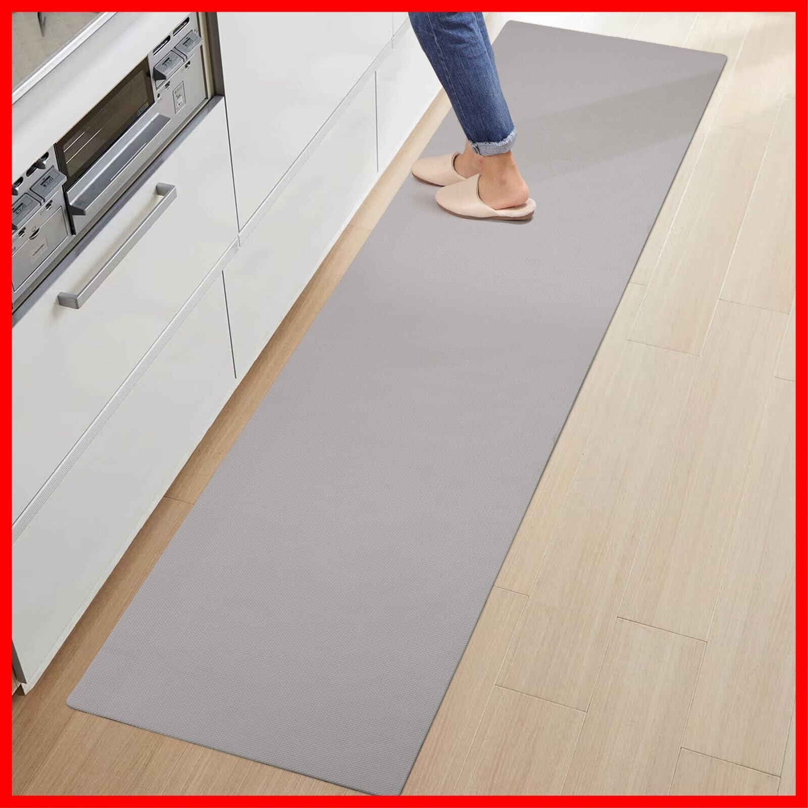 Tydle 拭ける!キッチンマット 44×180cm 低反発 厚さ6mm 洗濯不要 滑り止め PVCキッチンマット クッション性のあるPVC素材 お手入れ簡単 PVCマット 滑り止め ずれにくい 台所マット 拭けるキッチンマット 柔らかな踏み心地 グレー