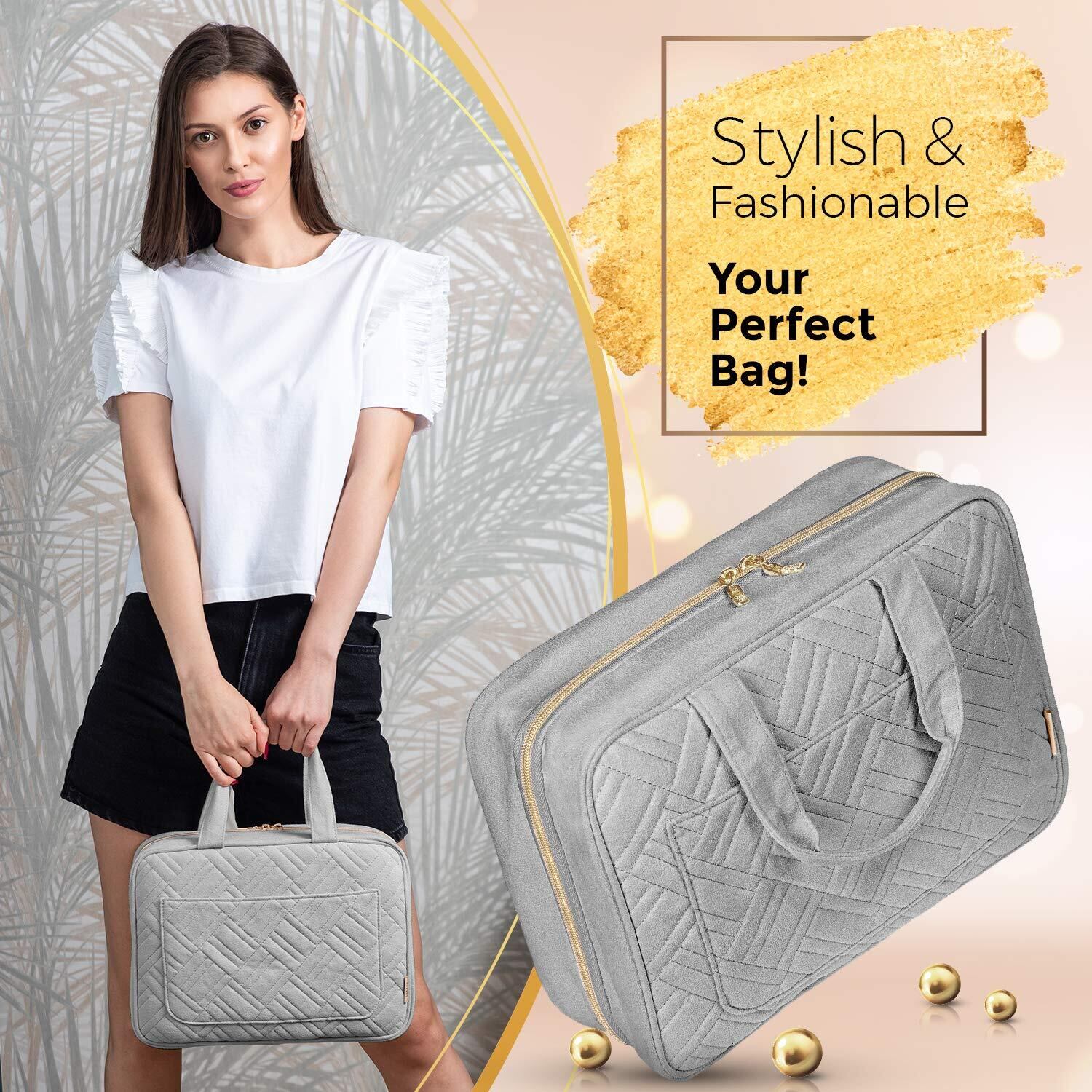もし大きなメイクアップバッグ、化粧品やアクセサリーの収納が必要なら、Boacayのトイレタリーバッグがおすすめです。多機能性を備え、金属製ジッパーの引き手が特徴で、高品質な素材のみで作られています。