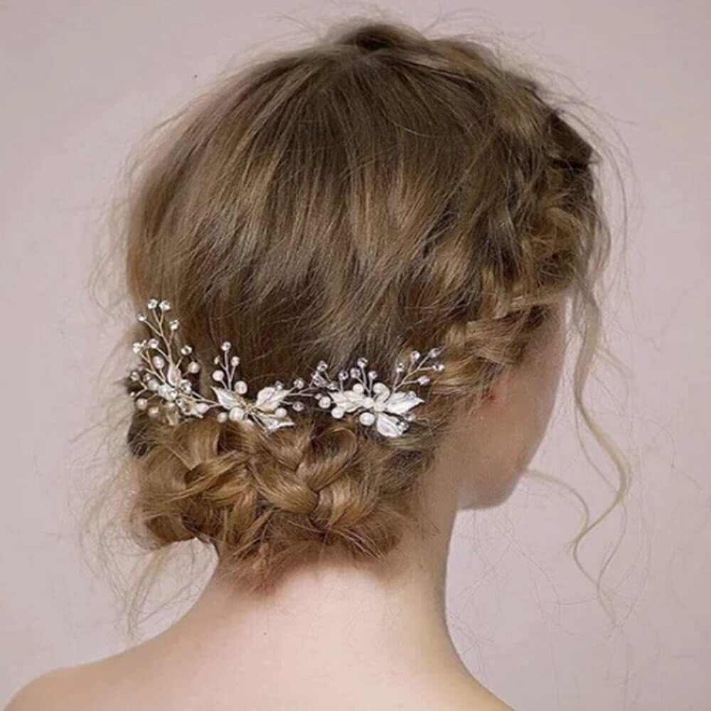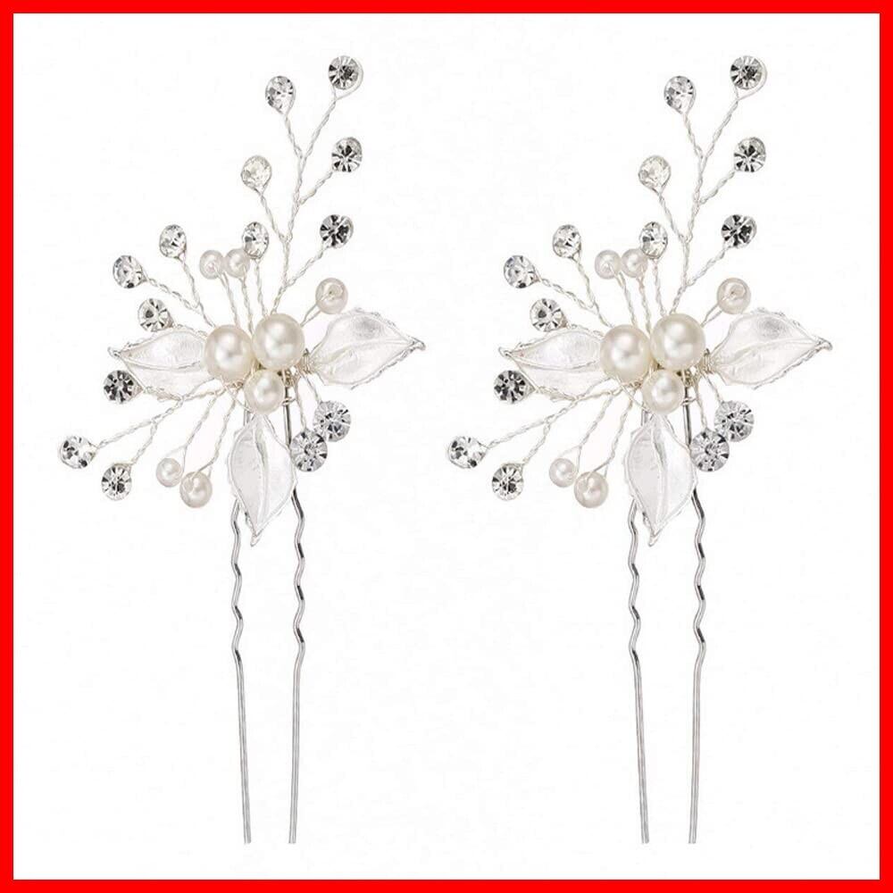 DFsucces ゴールドヘアピン 三つ葉 ヘアピン 結婚式 二次会 発表会 卒業会 パール 髪飾り (シルバー-2本セット)