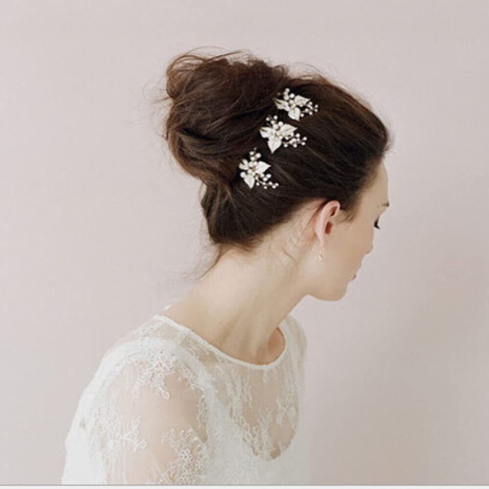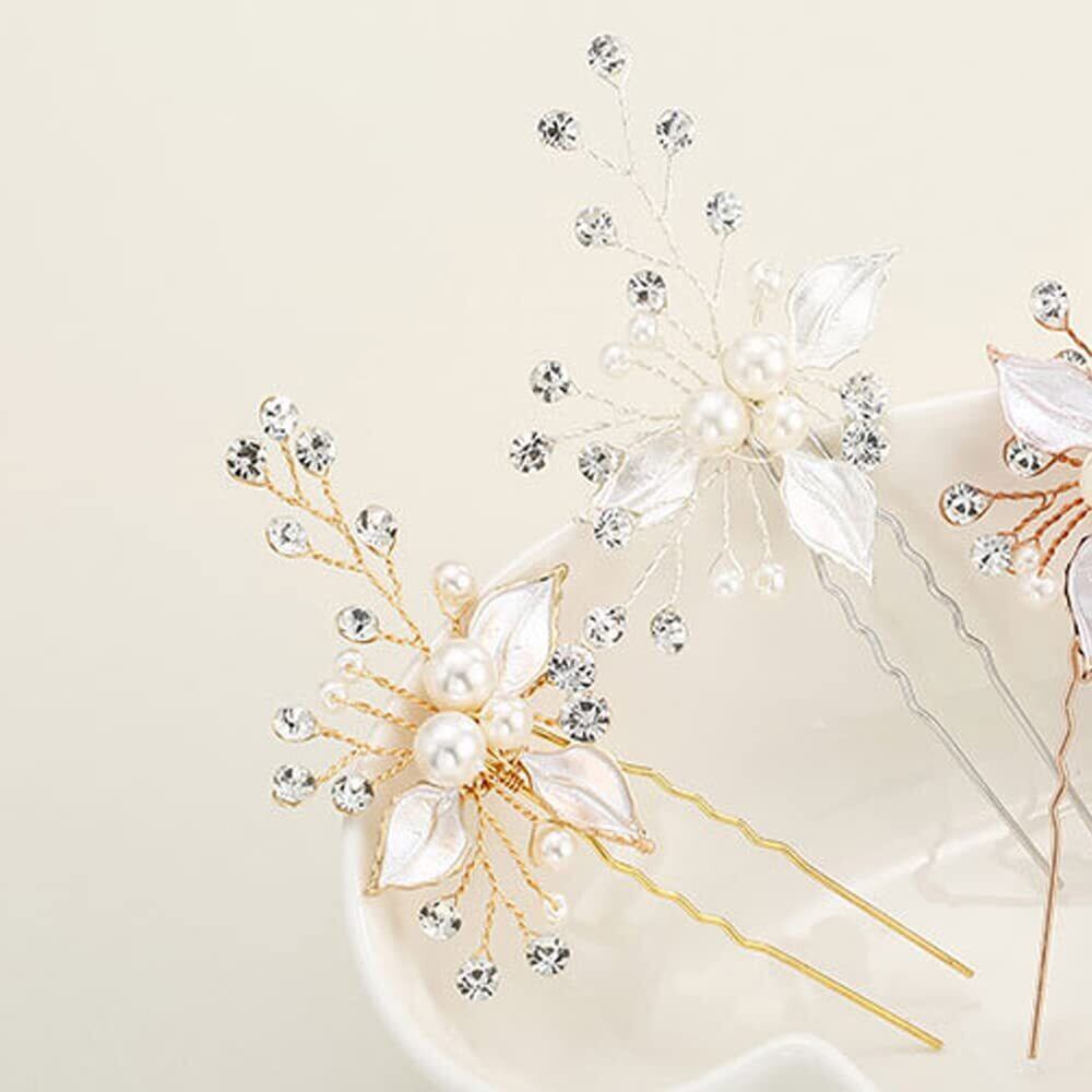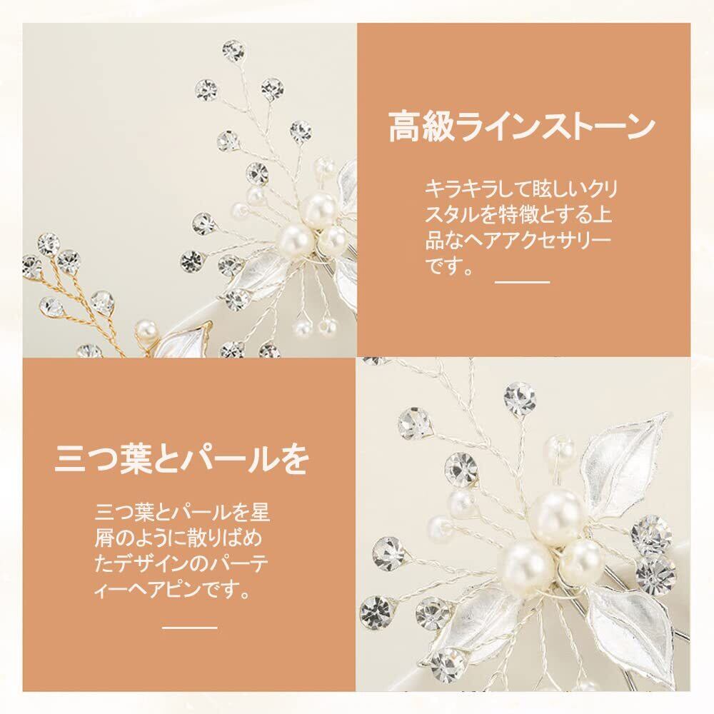 特徴:キラキラして眩しいクリスタルを特徴とする上品なヘアアクセサリーです。三つ葉とパールを星屑のように散りばめたデザインのパーティーヘアピンです。