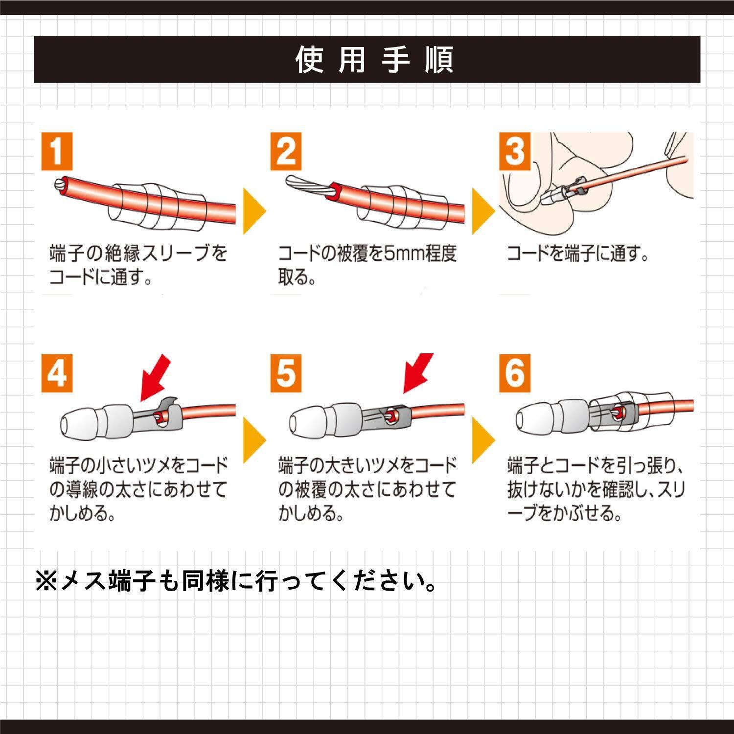 ■電工ペンチにセットしやすいように端子かしめ部を丸めてあります