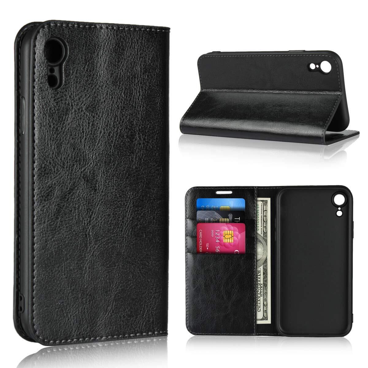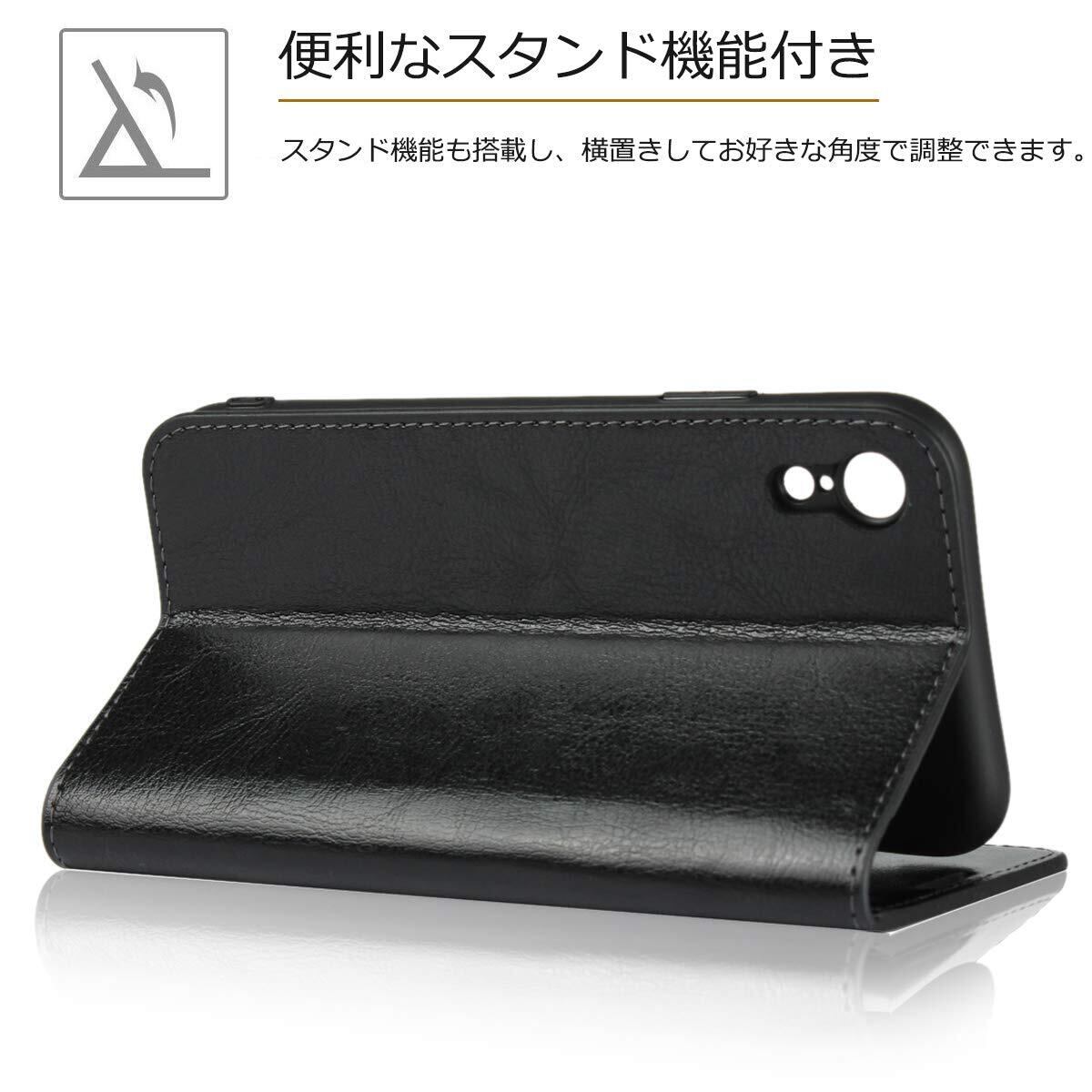 SKIASE iPhone XR ケース 手帳型 本革 高級レザー アイフォンXR 携帯カバー 財布型 横置きスタンド機能 カード入れ カード収納 耐衝撃 全面保護 軽量 薄型 落ち着いた色 ブラック