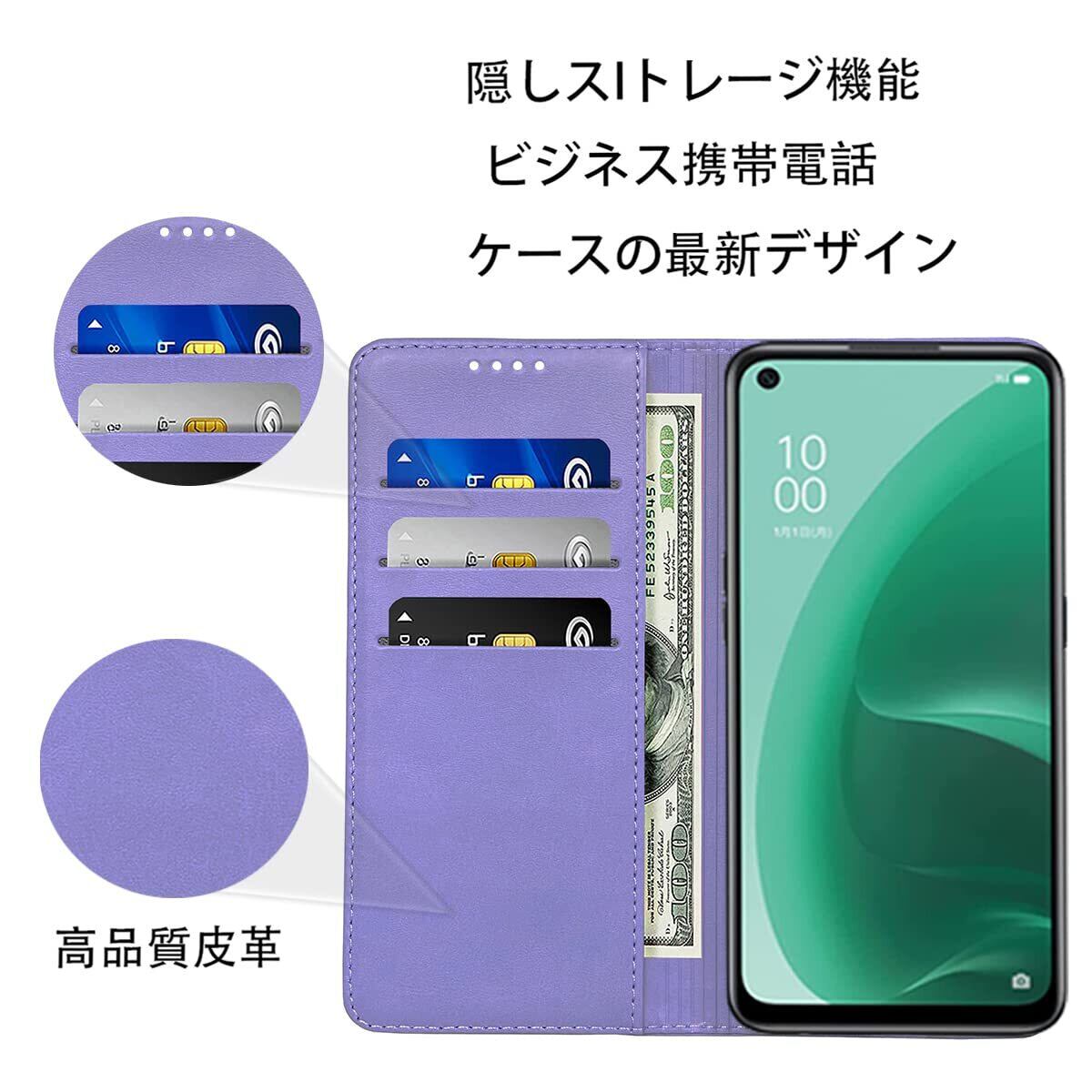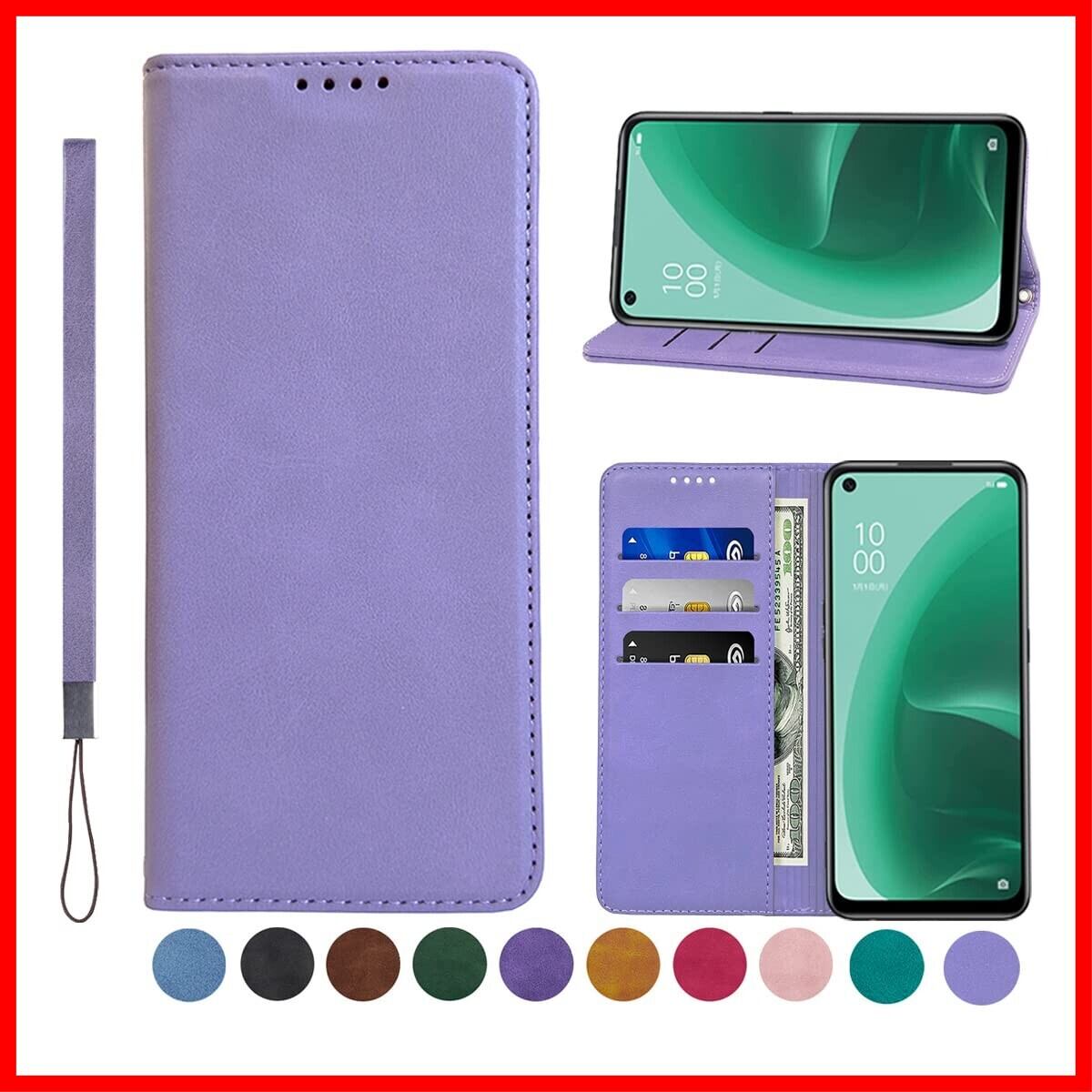 OPPO Reno 5A ケース 手帳型 高質PUレザー OPPO Reno 5A カバー 耐衝撃 オッポ Reno 5A 手帳 ケース 内蔵マグネット開閉式 ベルトなし スマホケース おしゃれ カードポケット スタンド機能 便利 スプラット同梱 携帯ケース (ライトパープル)