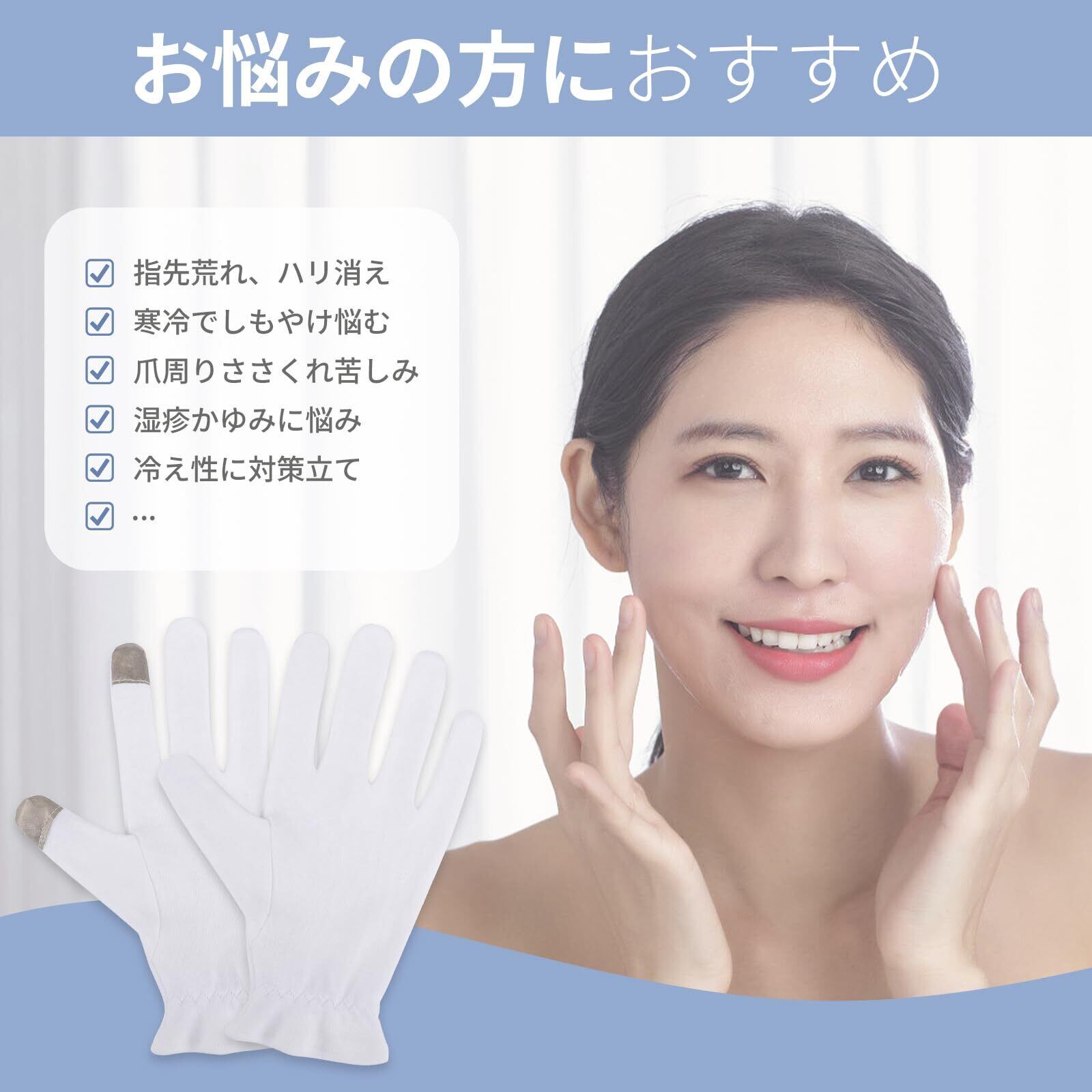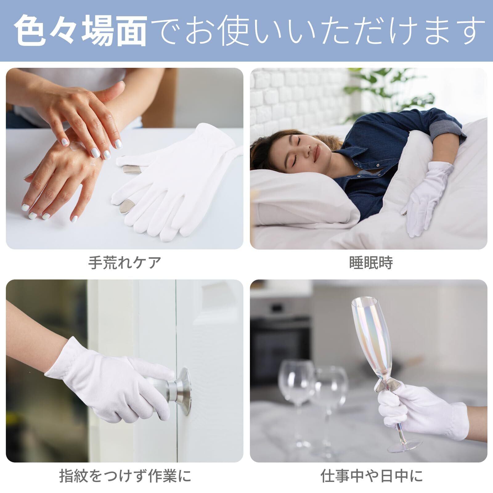 【保湿と手荒れの予防】通気性があり、保湿剤や美容液を手に塗布した後に着用することで、手の乾燥を防ぎつつ、同時に寝ている間に外部の刺激から手を守り、手荒れを予防します。特に寒冷な季節や乾燥した環境で手荒れが気になる場合に効果的です。
