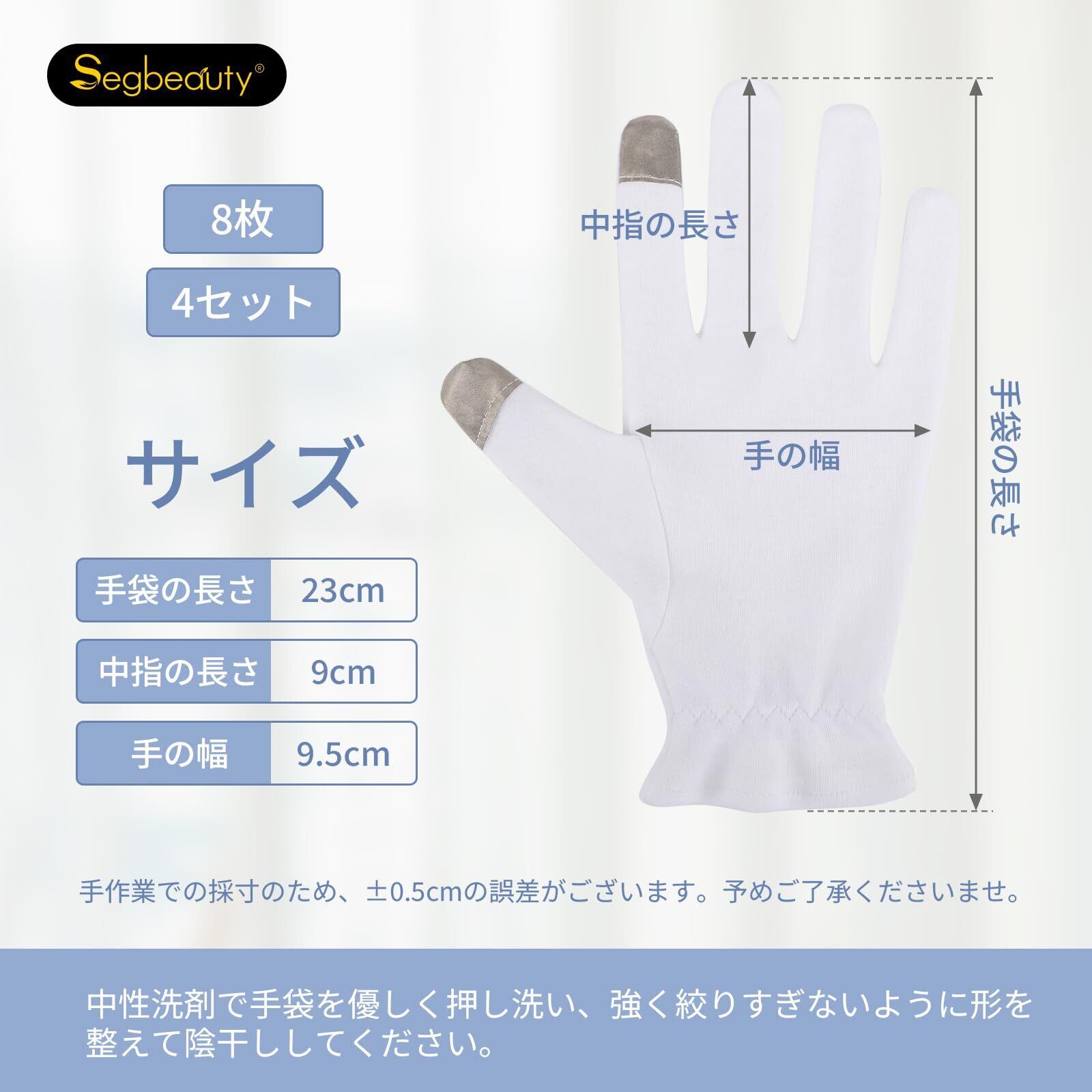 Segbeauty 手肌ケア手袋 4組8枚 ハンドトリートメント手袋 綿手袋 純綿100% 手保護 ハンドケア ナイト手袋 おやすみ手袋 肌に優しい 保湿ケア 保温 手荒れ防止 スマホ対応 就寝 男女兼用(白い 4双 L)