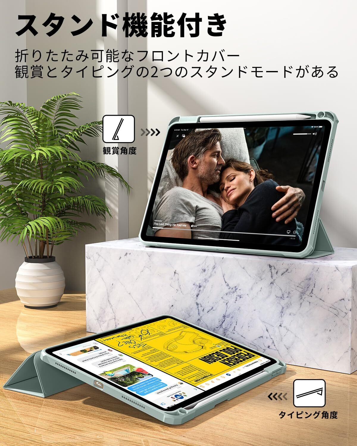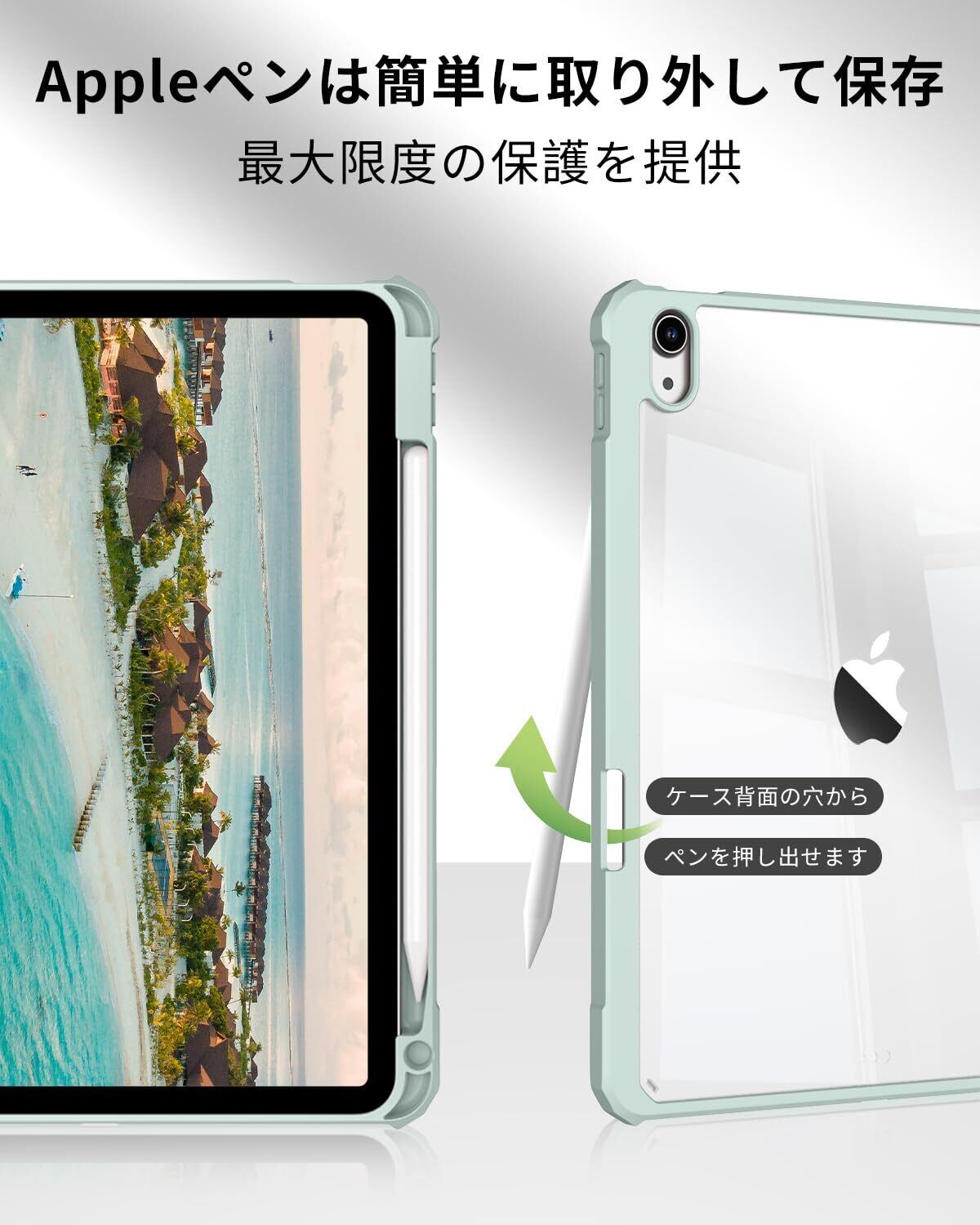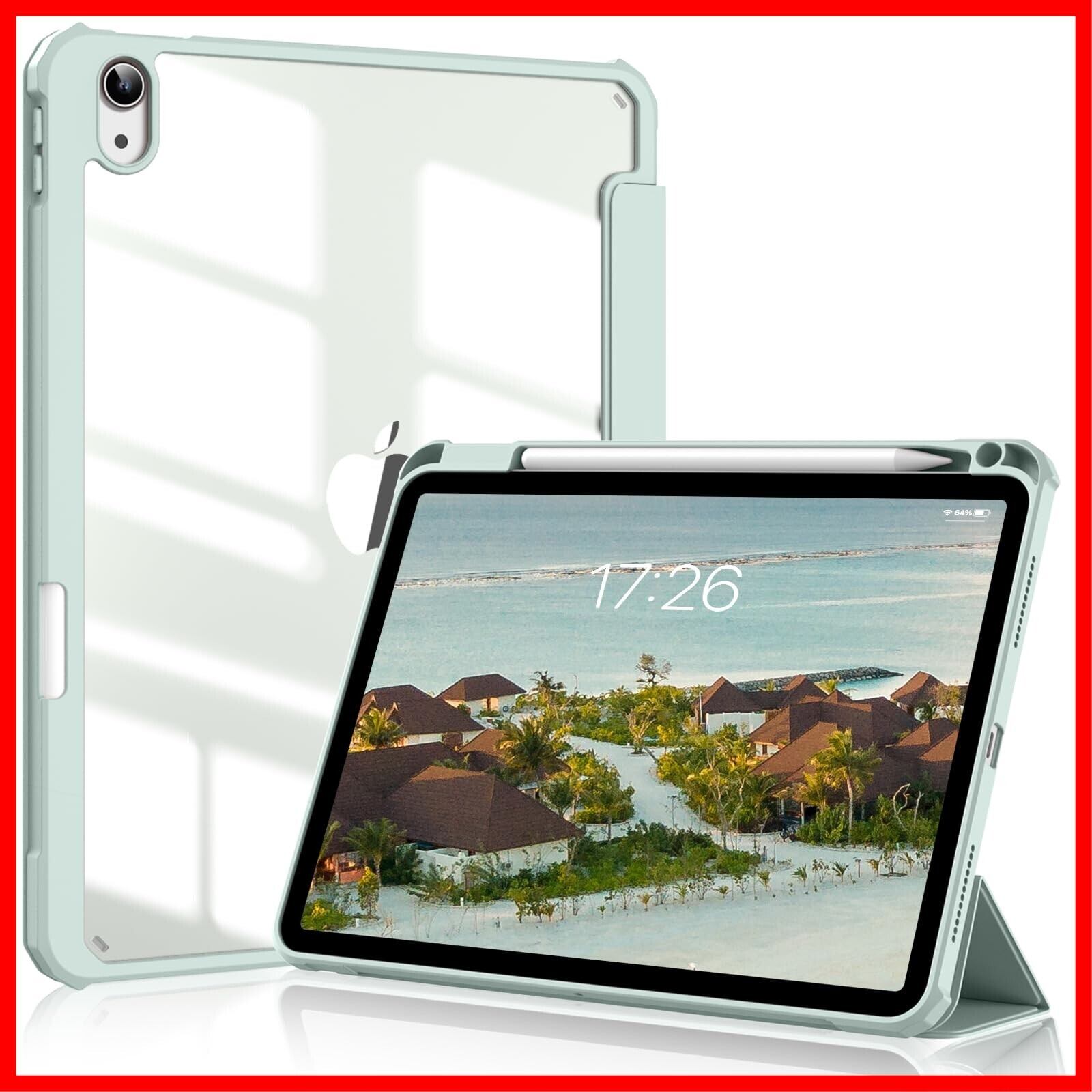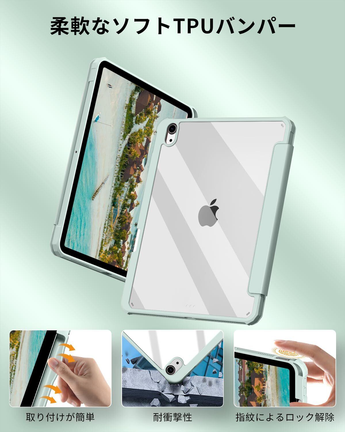 SQBEBS iPad 11世代 ケース A16 (2025) iPad 第11/10世代 10.9インチ (2022) 透明バックカバー ペンシルホルダー付き 三つ折りスタンド Touch IDとオートスリープ機能対応 軽量 薄型 傷つけ防止 PU合成レザー TPU ライトグリーン