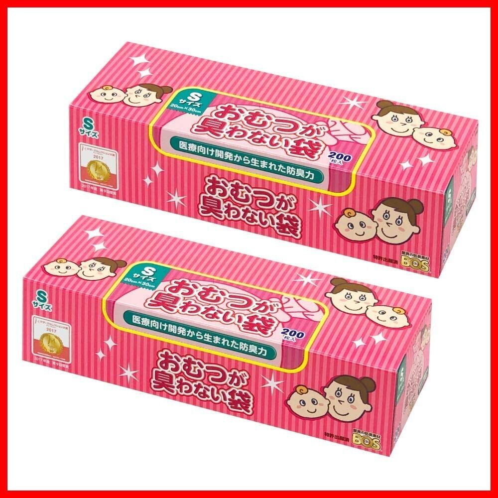 驚異の防臭袋 BOS (ボス) おむつが臭わない袋 2個セット 赤ちゃん用 処理袋 【カラー:ピンク】 (Sサイズ 200枚入)
