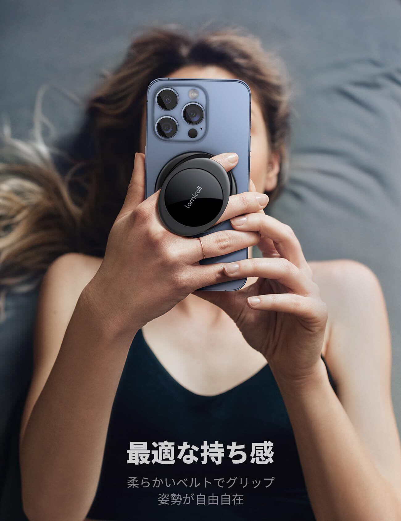 【指が痛くならない】 Lamicall マグネット式 スマホ リング ホルダー : iphone マグセーフ バンカーリング 柔らかいベルト 携帯 グリップ スタンド機能 強力 磁気増強 メタルリング付き 取り外し可能 Magsafe対応 iPhone 16 16 Plus 16 pro 16 pro max iphone 15 14 13 12 mini アンドロイドxiaomi に対応 黒