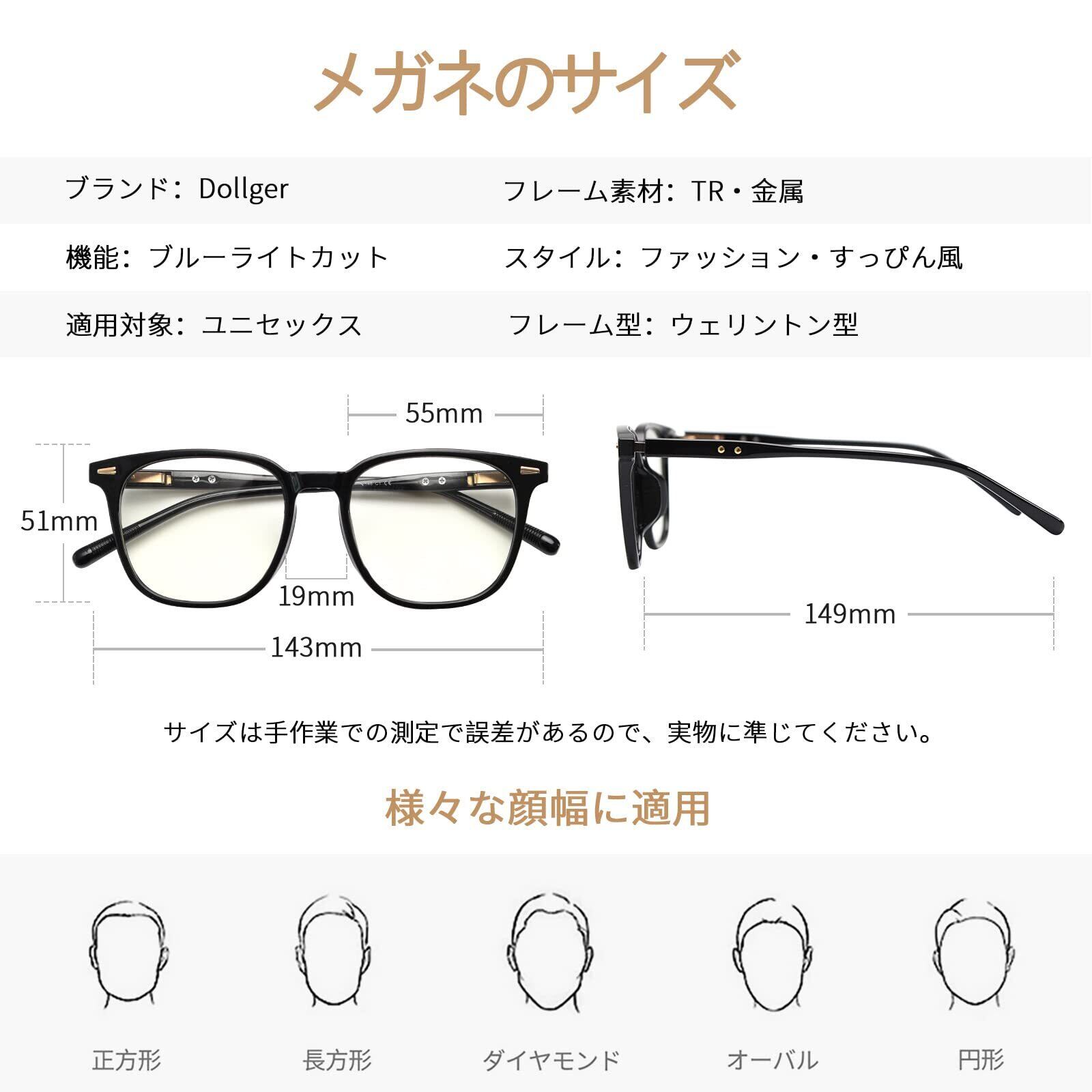 【伊達メガネ おしゃれ】Dollger伊達メガネはクラシックなウェリントン型デザインを採用して、フェイスラインを修飾するスクエアメガネです。様々な顔の形・幅にフィットして、小顔効果を持っています。さらに、軽やかでストレスのないことで人気があり、男女問わずにご使用いただけます。
