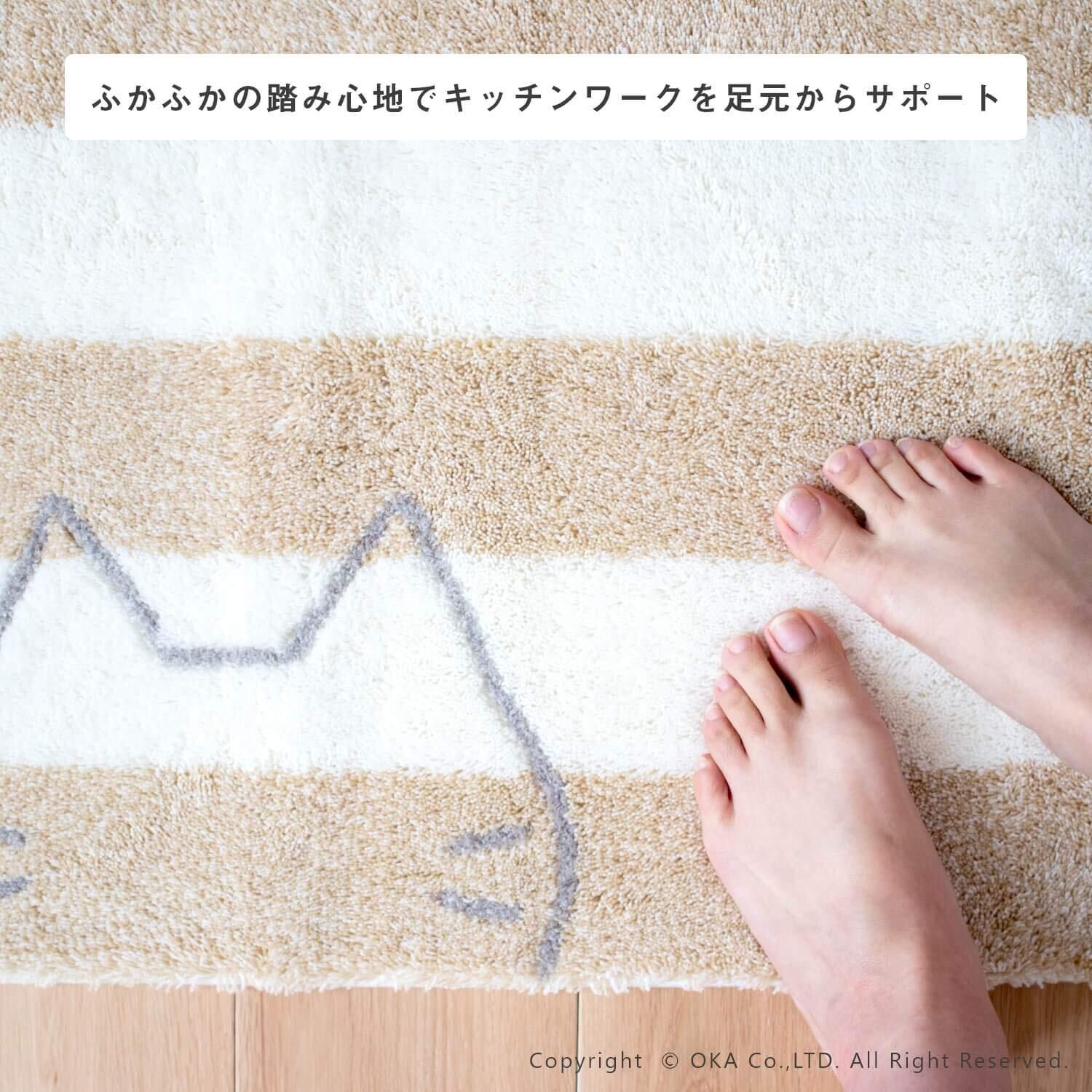 オカ うちねこ キッチンマット 約45×120cm (ホワイト)