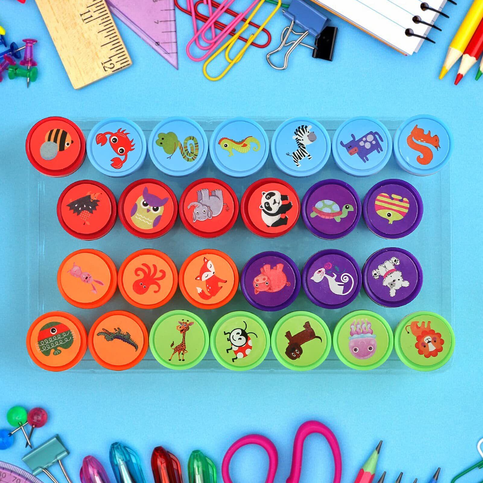 Kesote スタンプ 可愛い おもちゃ 動物 26個セット はんこ インク付き 円形