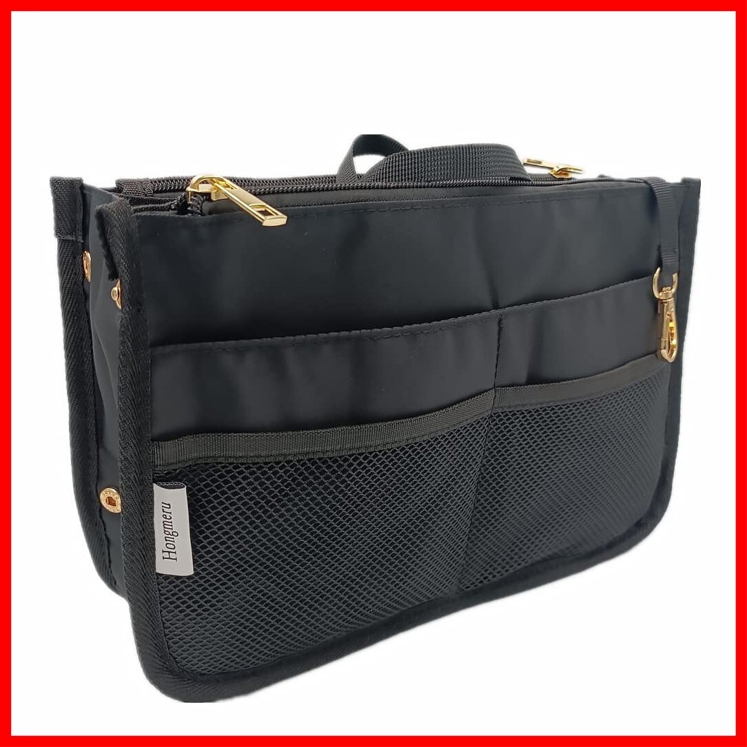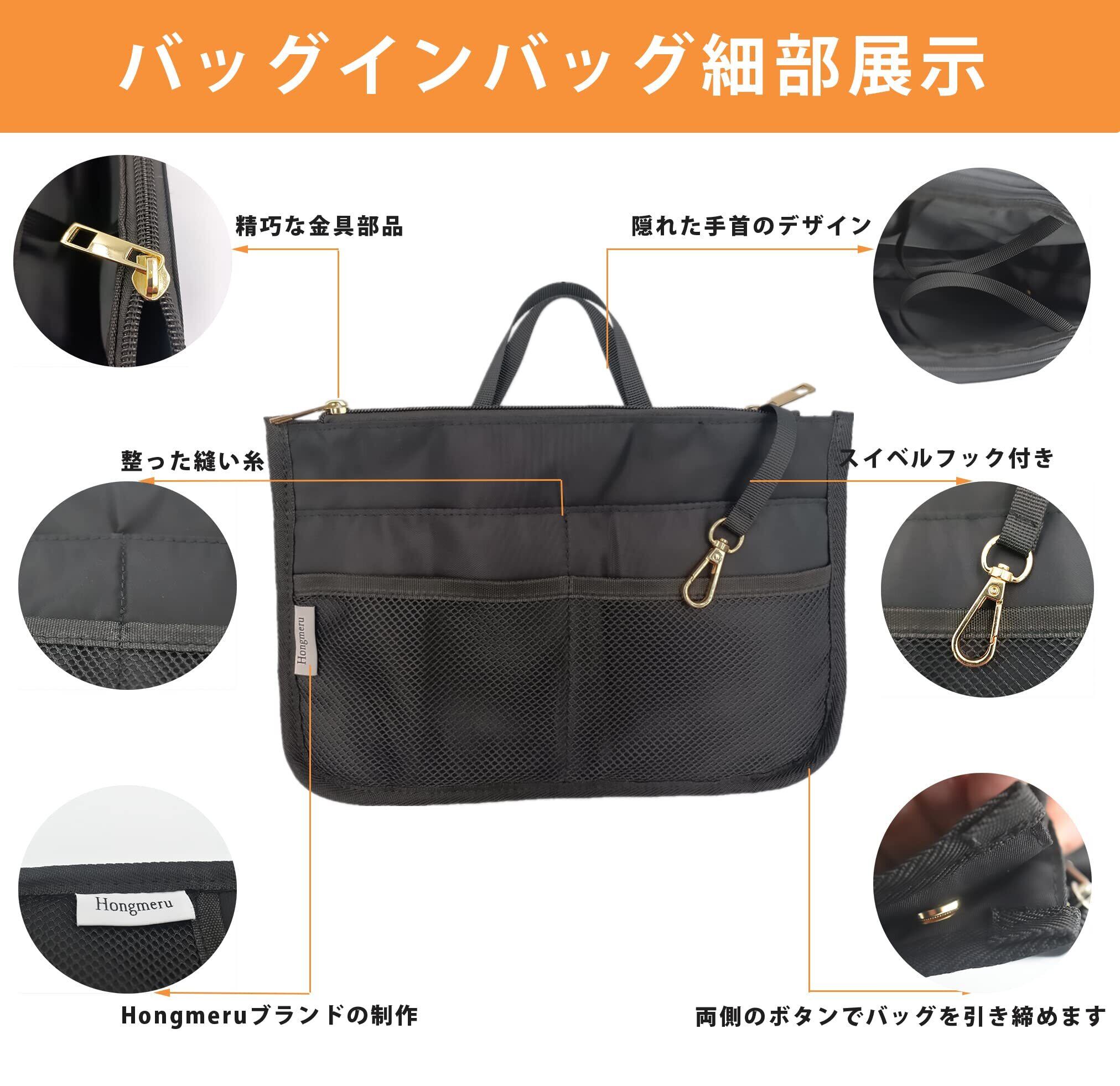 Hongmeru バッグインバッグ a4 横 インナーバッグ バックインバック 小さめ バックインバック トートバッグ用 11ポケット バッグ 仕切り バッグインバッグ ナイロン 軽量 自立 金属製ハードウェア メンズ レディース バッグ インバック bag in bag organizer(ブラック) | hananoki
