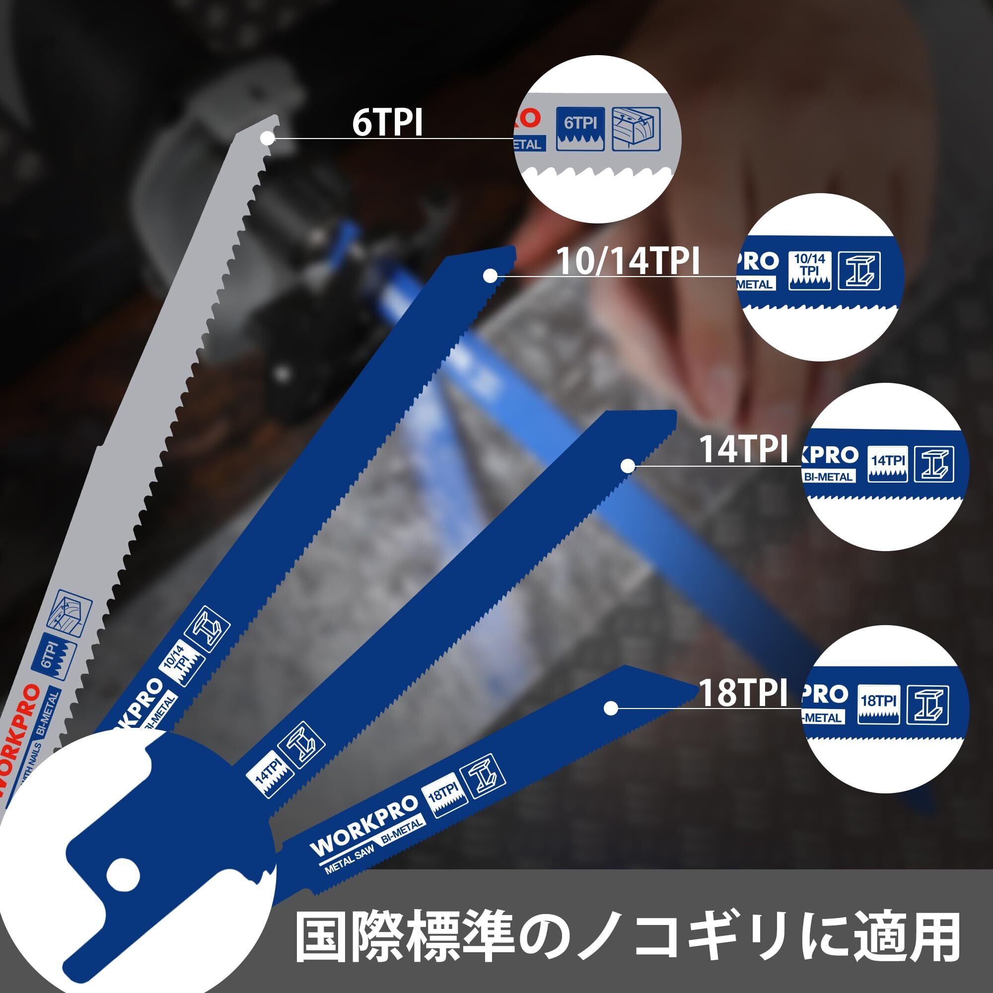 WORKPRO レシプロソー替刃 レシプロソーブレード 電気のこぎり替え刃 鉄工・木工用 金属 ステンレス 非鉄金属 プラスチックパイプ 解体用 収納ケース付き 10点組