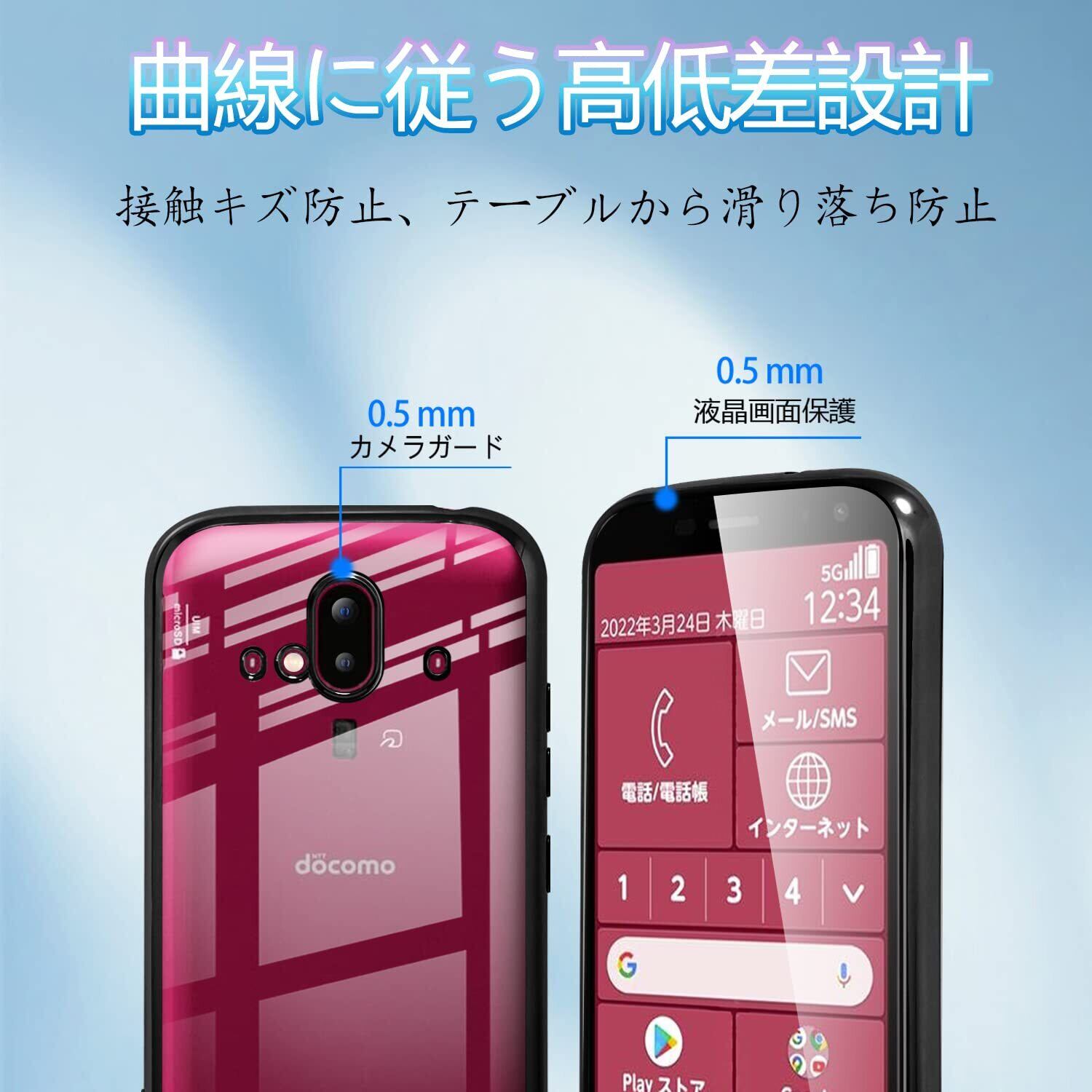 【驚きの透明感】FUJITSU F-52B用ケースの背面は透き通った高い透明度を誇り、フレームは多層メッキ加工技術によって設計。透明な背面はF-52Bの本来の美しさを示し、フレームのメッキはよりおしゃれに感じます。高品質のTPUは、優れたTPU材料を採用し、柔軟に変形しない、油を噴き出す技術を加え、手触りを防ぎ、指紋の汗を防ぎ、触感が良好である。