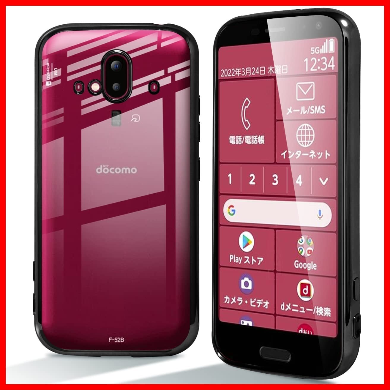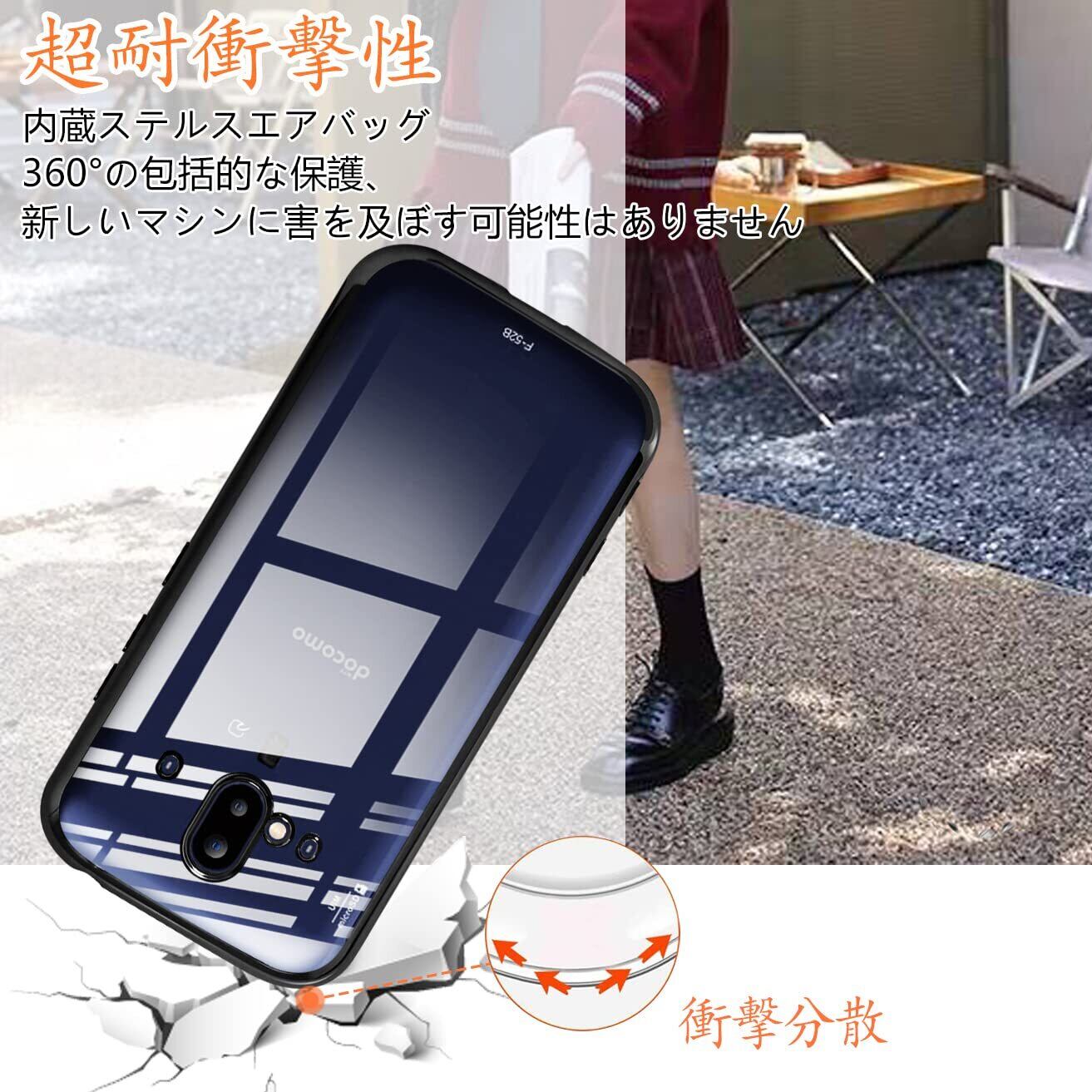 【スタイリッシュな外観】F-52B 用ケース背面部分が透過デザインで、F-52B のカラーや質感をそのまま映えて高級感が溢れて、ほんの少しのイメージチェンジ メタリックなサイドカラーがF-52Bのデザインをさらに引き立ています。