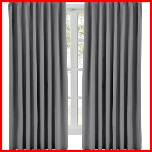 Hansleep カーテン 遮光カーテン 1級遮光 厚手 断熱 防寒 防音 無地 洗濯可能 寝室 リビング 2枚組 (グレー, 幅100cm×丈178cm)