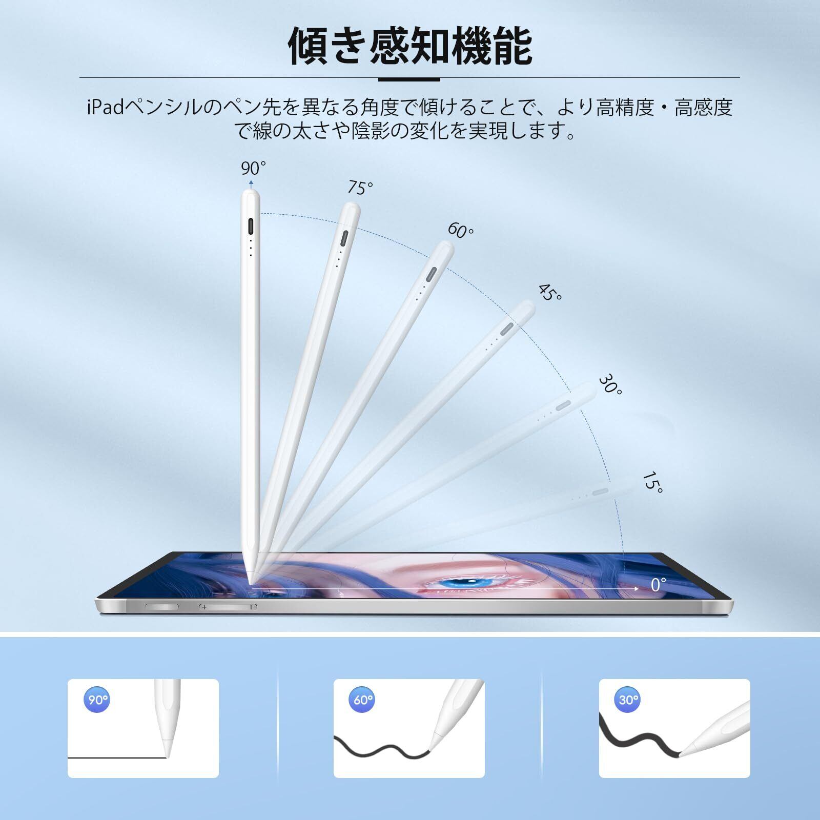 iPad 用ペンシル 15分急速充電 Mixoo iPadペンシル タッチペン パームリジェクション/高感度/磁気吸着/傾き感知 iPad Pro 11/12.9インチ、iPad Pro 11/13インチ(M4)、iPad 6/7/8/9/10/11(A16)、iPad Air 3/4/5、iPad Air 11/13インチ(M2/M3)、iPad Mini 5/6に対応