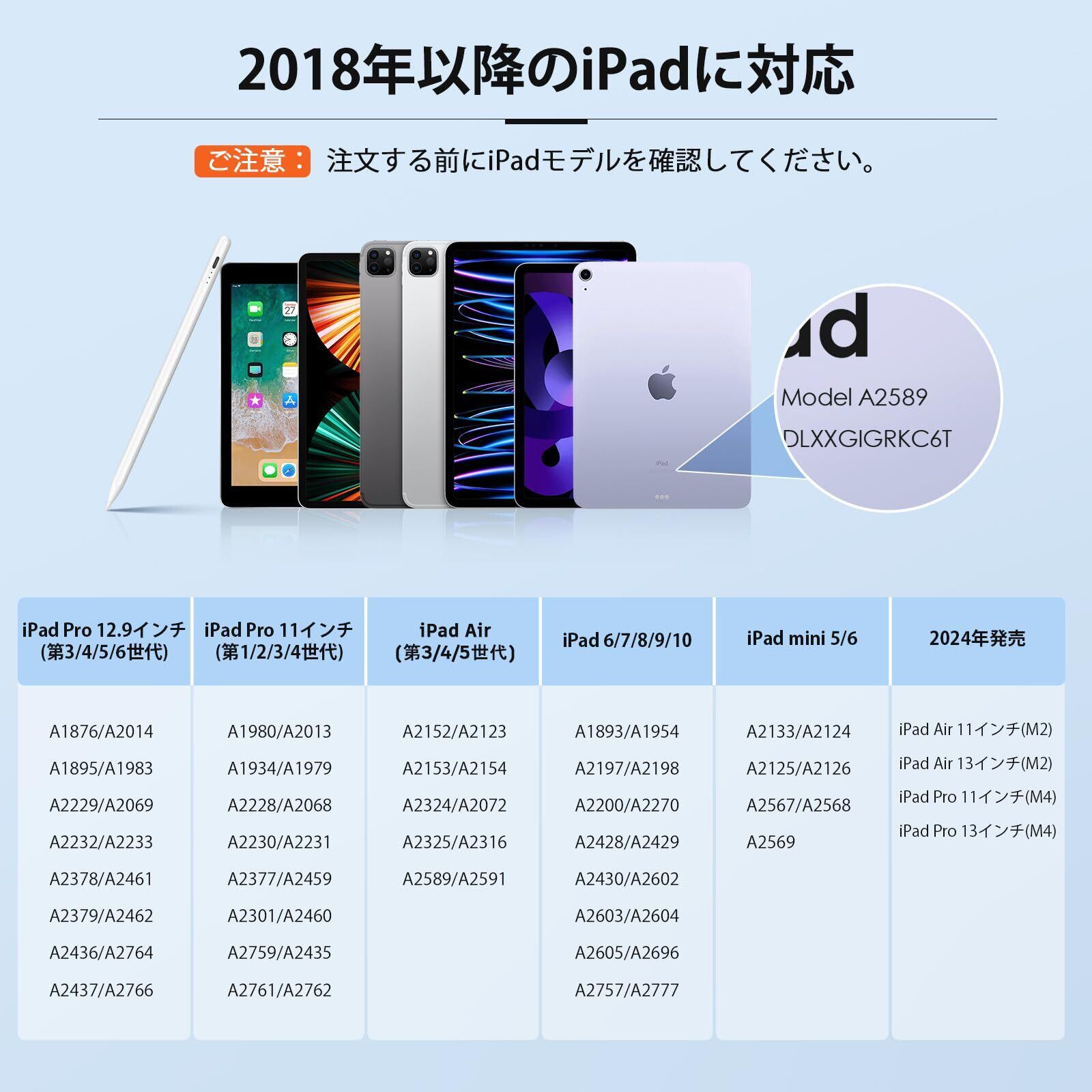 【iPad 2018-2025と互換性あり】iPadペンシルは、以下のiPadモデルと互換性があります:iPad 11th(A16)/10th/9th/8th/7th/6th Gen、iPad Air 5th/4th/3rd Gen、iPad Air 11/13インチ(M2/M3)、iPad Mini 6th/5th Gen、iPad Pro 11インチ(全ての世代)、iPad Pro 12.9インチ(6th/5th/4th/3rd Gen)、iPad Pro 11/13インチ(M4) 。注:iPad mini第7世代と互換しません。ご注文前に、対応するiPadモデルを確認してください。