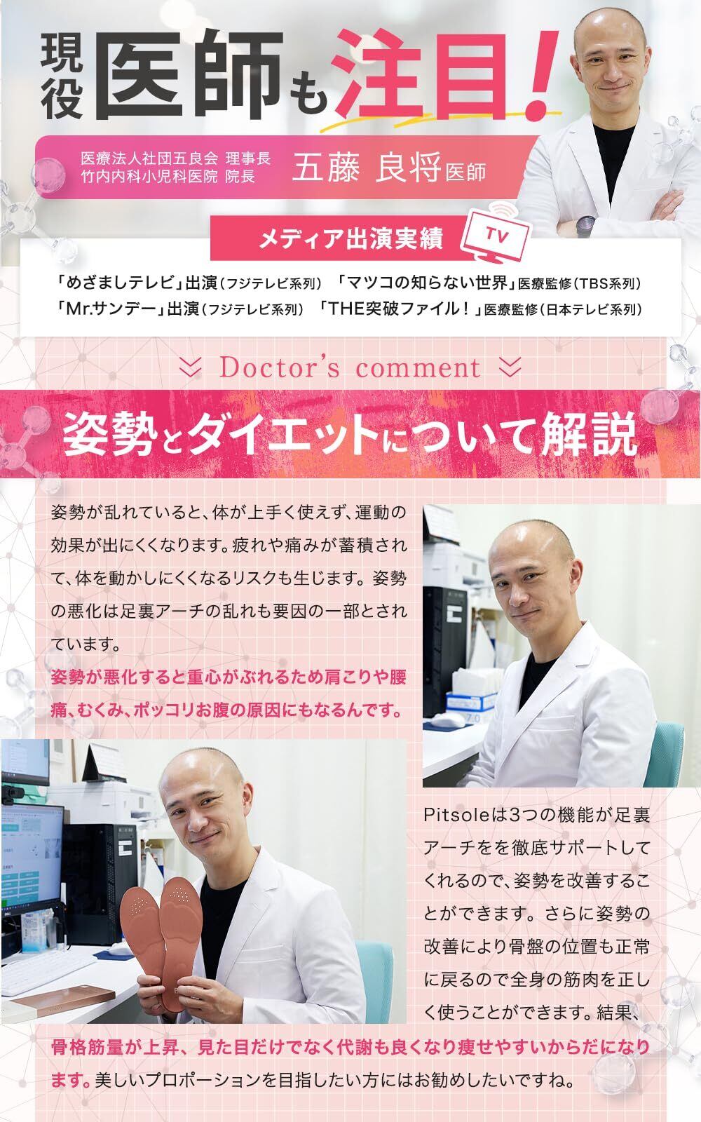 [正規品] ピットソール 中敷き 姿勢サポート 姿勢インソール 男女兼用 立ち仕事 アーチサポート サイズ調整 インソール 超軽量 模倣品対策済み (ピンク,S(23~24.5cm))