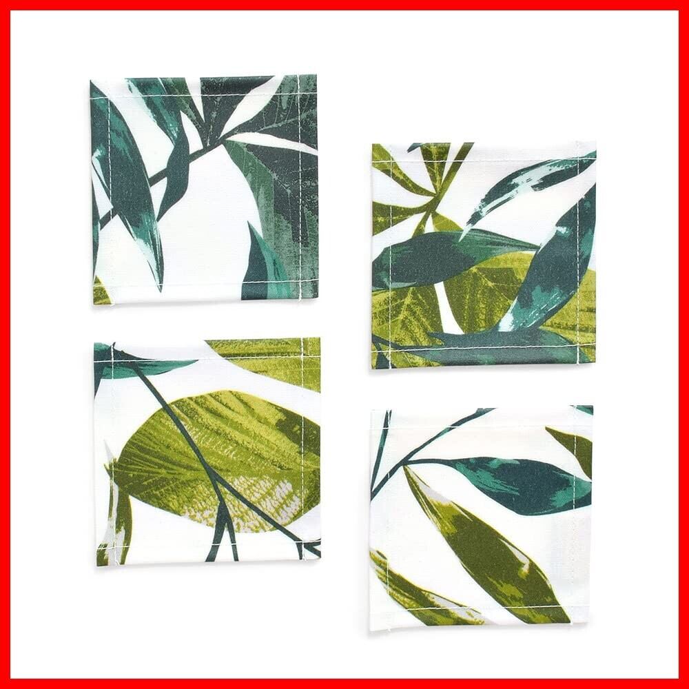 コースター ラミネート おしゃれ 布 4枚セット 洗える 北欧 グリーン ボタニカル リーフ柄 スタイルデコール W3000810