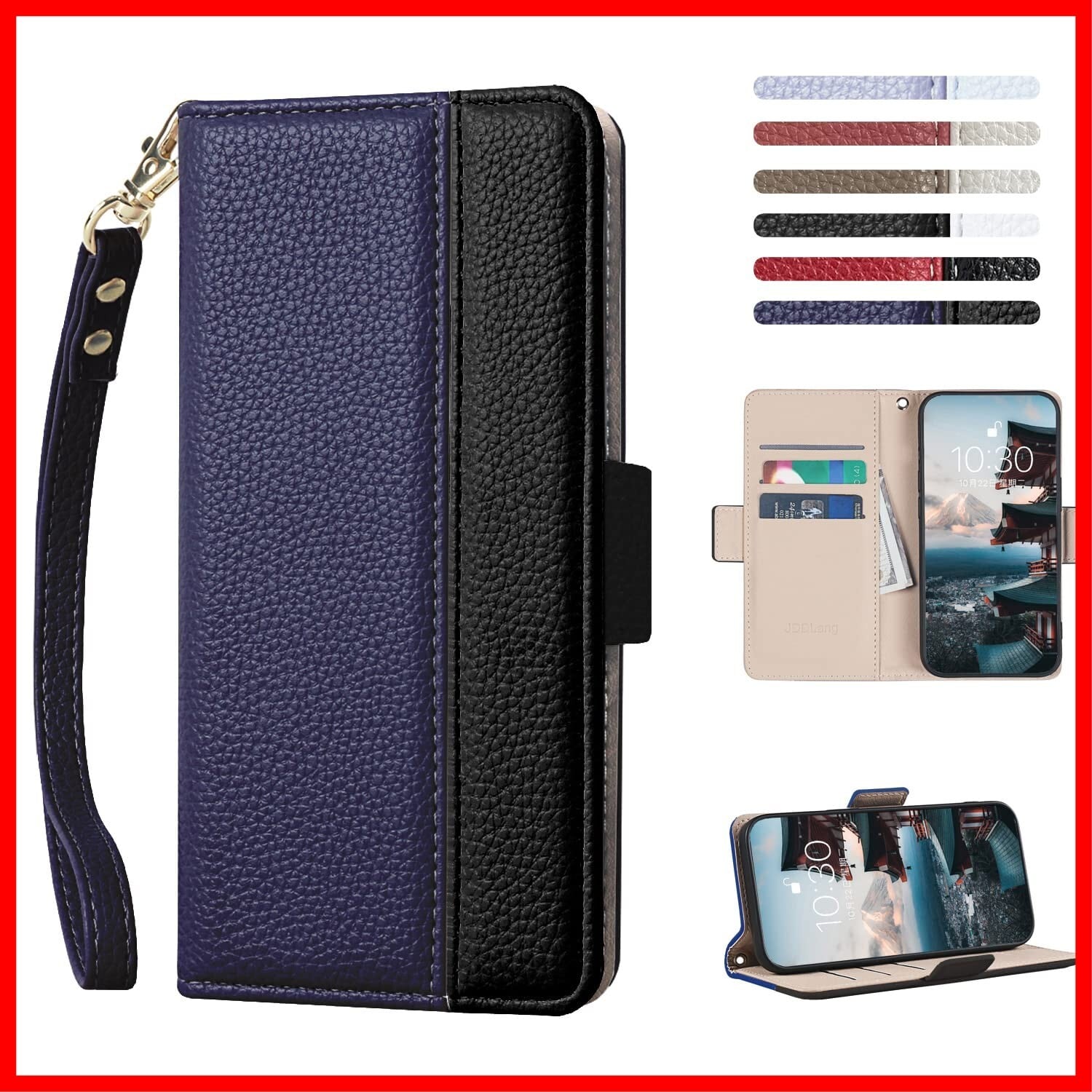 【JDDLang】iphone 14pro 手帳型スマホケース サイドマグネット 高級PUレザー 全面保護 対照色 耐久性 軽量 便利 耐衝撃 ハンドメイド 14proプロ 携帯電話ケース財布型カバー カード収納 横置き機能 汗や指紋防止 擦り傷防止 男女性 上品な シンプル気質 ギフト (iPhone 14pro 6.1インチ対応,附ストラップ)ブルー | hananoki