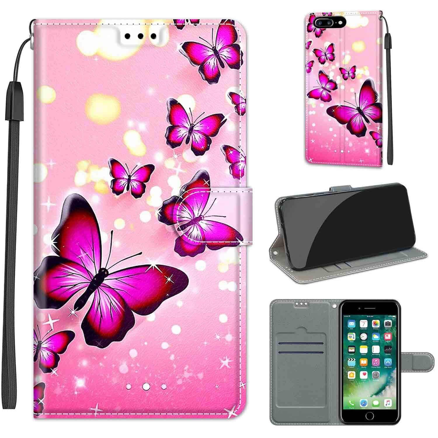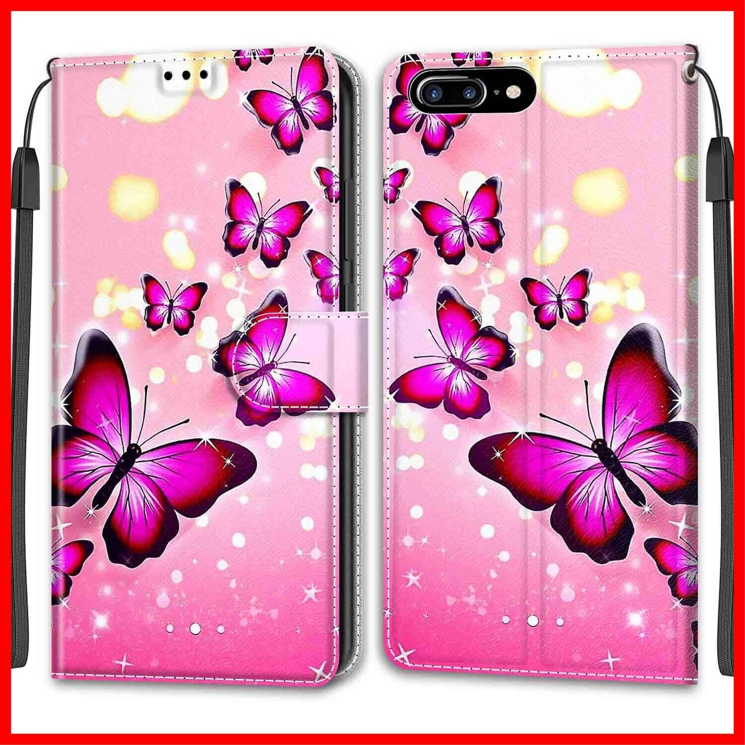 KENHONER iPhone 7 Plus ケース iPhone 8 Plus ケース 手帳型 アイフォン7 Plus ケース アイフォン8 Plus ケース PU 高級レザー マグネット カード収納 全面保護 薄型 耐衝撃 横置き おしゃれ 人気 携帯カバー iPhone 7 Plus/8 Plus対応 (ピンクの蝶)