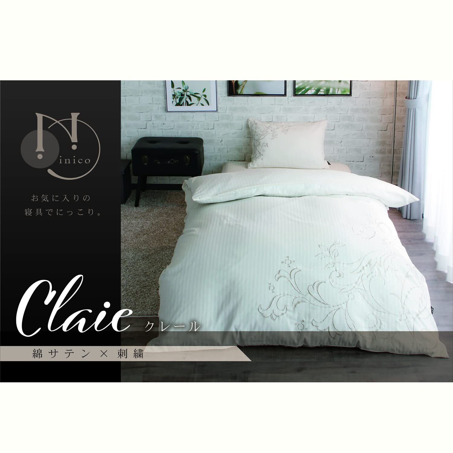 メリーナイト 枕カバー inico (イニコ) 「クレール」 アイボリー 約43×63cm ファスナー式 まくらが入れやすい 綿100% サテン織ストライプ 刺繍入り 上品な光沢感 洗える IN61551-07