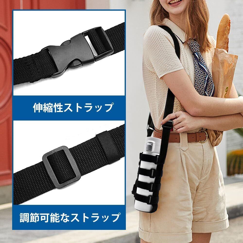 [Tuainge] 水筒カバー ボトルホルダー ボトルカバー 肩掛けショルダーベルト付き 長さ調節可能 ユニセックス おしゃれ 登山 旅行 散歩 (ブラック*1)