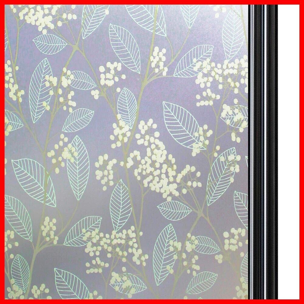 Qualsen 窓ガラス目隠しフィルム 窓 めかくしシート窓ガラス 目隠しシート窓ガラスフィルム 目隠し シートステンドグラス シール 水で貼ってはがせる 外から見えない UVカット 飛散防止 (44.3 x 200 cm, 白果樹) | hananoki