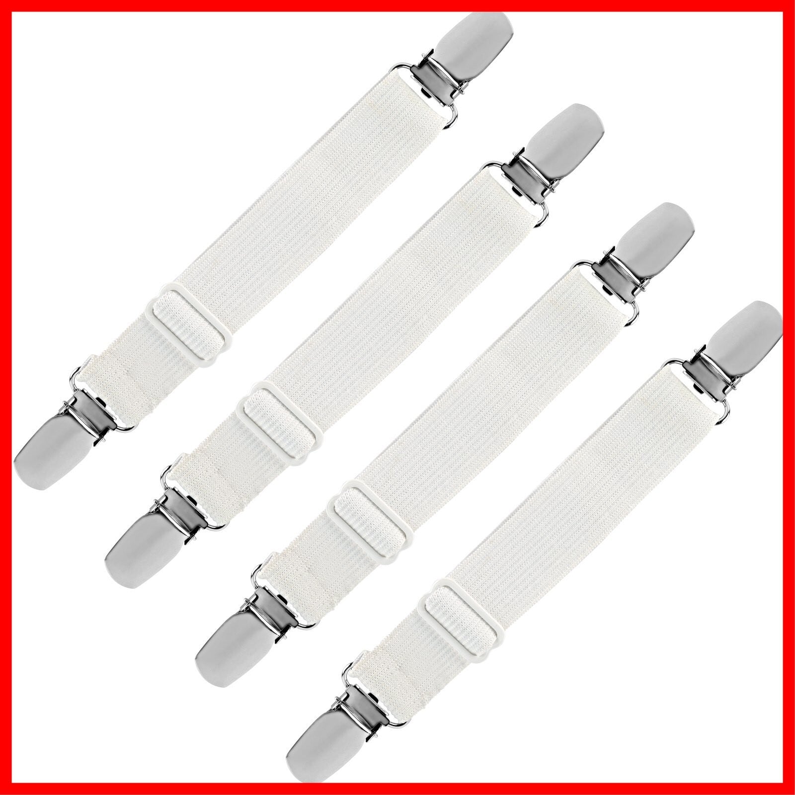 LIHAO ベッドシーツクリップ ズレ防止 クリップ 布団クリップ 調節可能 シーツ 布団 滑り止め シーツ固定 4本入 アイロン台カバークリップ 白 ズレ防止クリップ ソファー シーツ ズレ防止 | hananoki