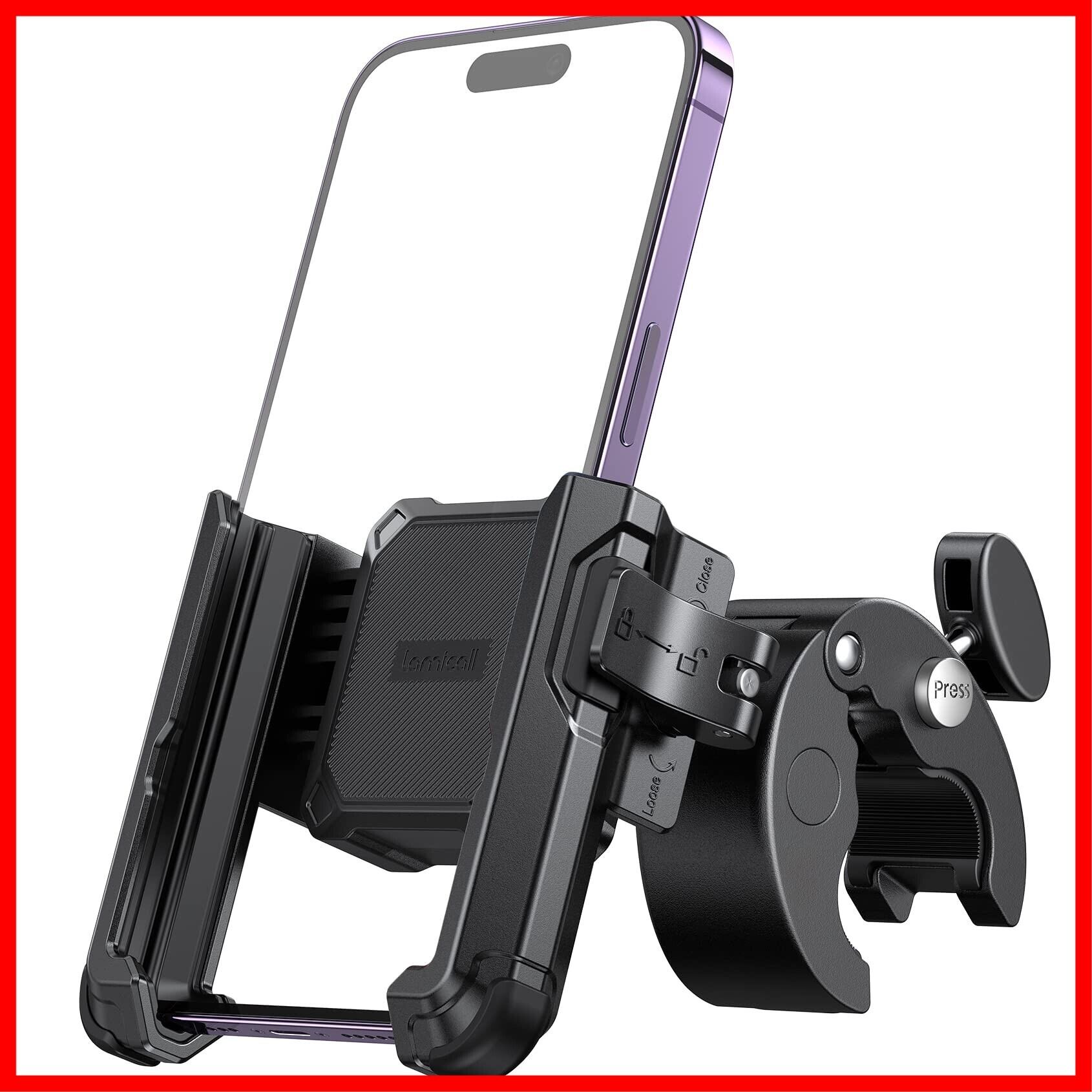 Lamicall クイック取付 自転車 スマホ ホルダー : 自転車 携帯ホルダー スマホ自転車ホルダー ロードバイク iphone bike mount 落下防止 360度回転 簡単取付 iPhone 16 16 Plus 16 pro 16 pro max iphone 15/14/13 pro plus pro max android 4.7-7インチに対応 ブラック
