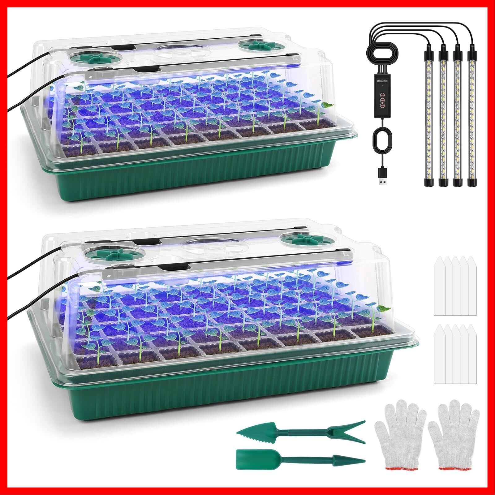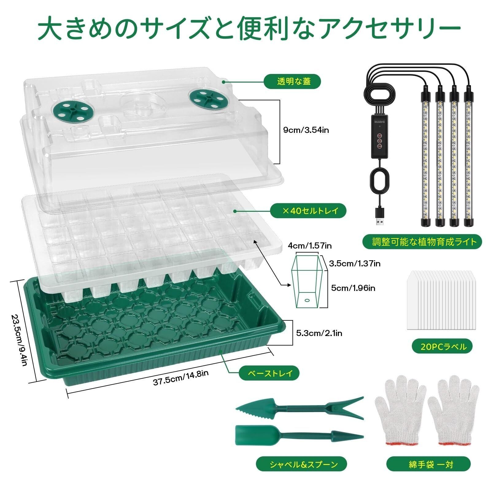 BlumWay 育苗ポット 2セット 40穴 植物育成ライト付き 高くする透明カバー 種子トレイ 発芽 育苗セット 野菜栽培 多肉植物 家庭菜園 園芸/植栽/庭園 プラグトレイ