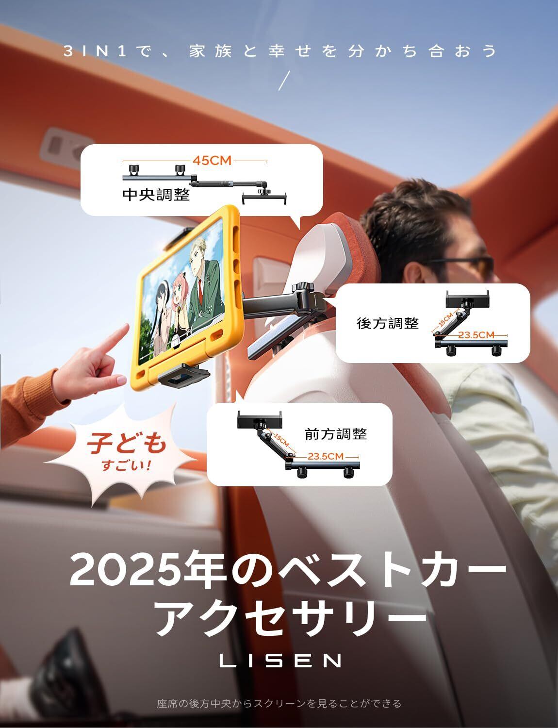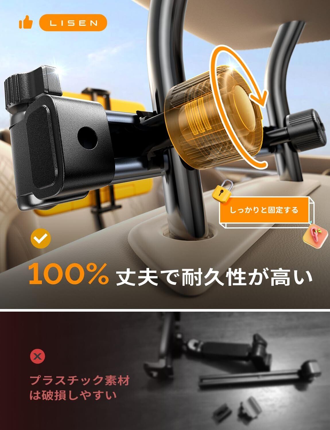 LISEN 車 タブレットホルダー 後部座席 伸縮アーム ヘッドレスト タブレットホルダー 滑り防止 ipad 車載ホルダー スタンド 車載用ヘッドレスト 360°回転可能 カー用品 iPad Pro/Air/Mini/Galaxy/Fire4.7-11インチタブレットに対応