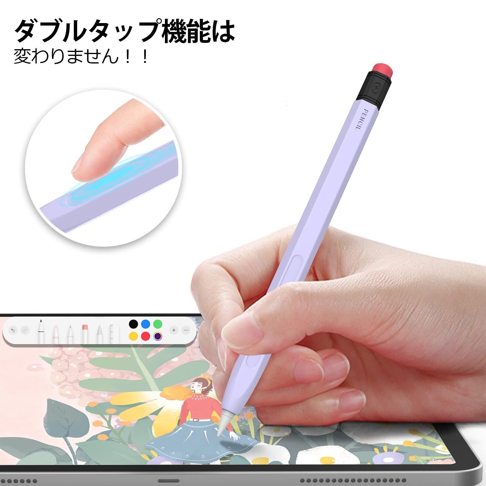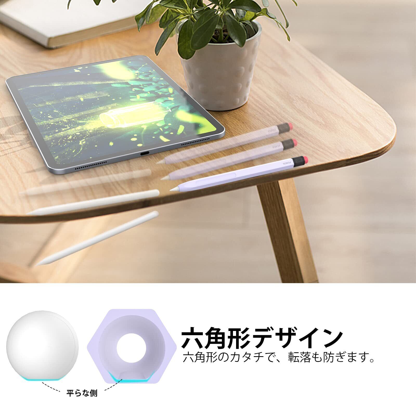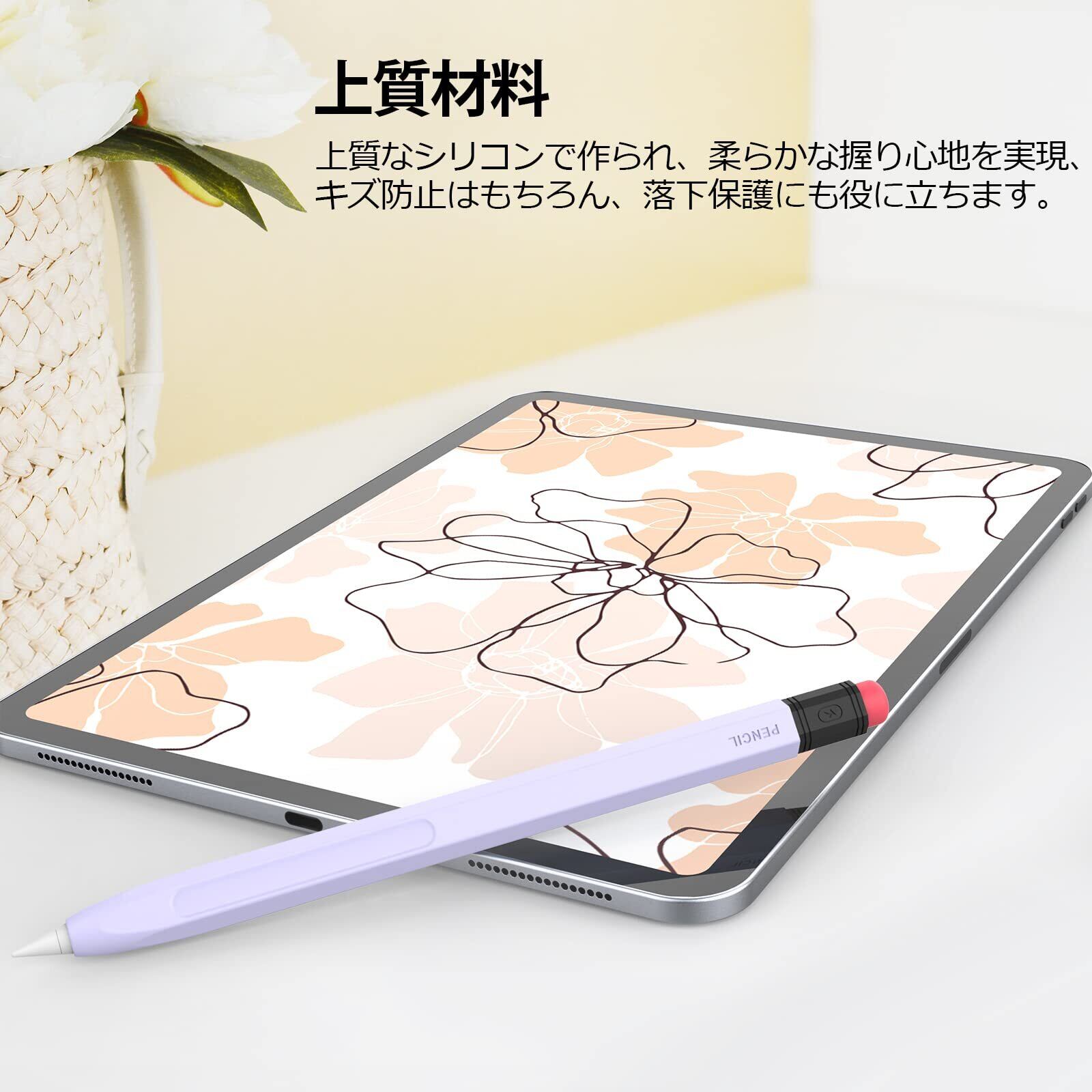 AhaStyle Apple Pencil Pro&Apple Pencil 第二世代用シリコン保護ケース 鉛筆レトロデザイン 柔らかなシリコン材質 Apple Pencil Pro&Apple Pencil 第二世代のみに適用 ワイヤレス充電対応 (ラベンダー) | hananoki