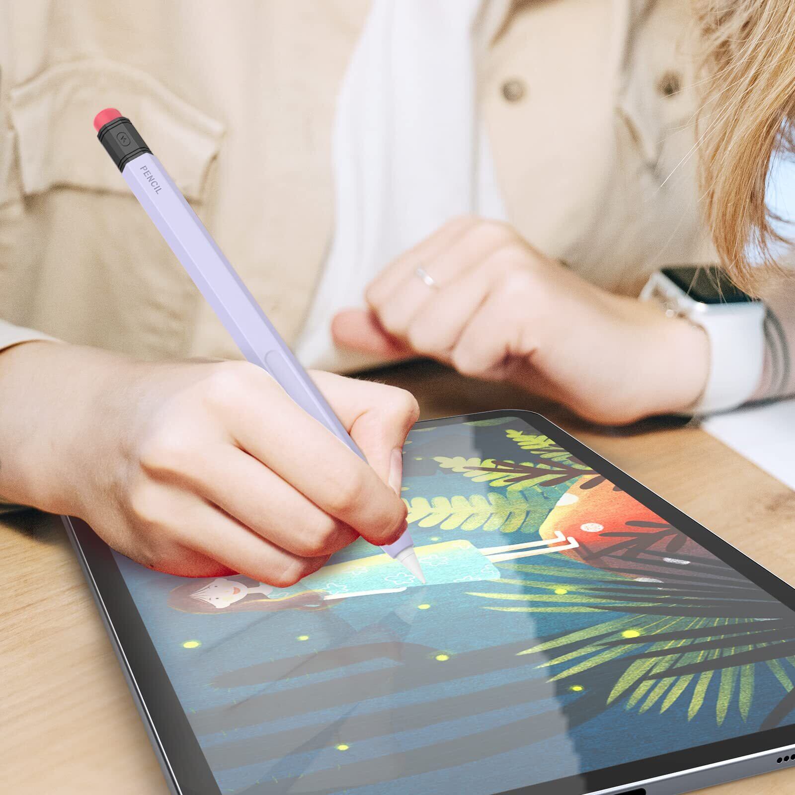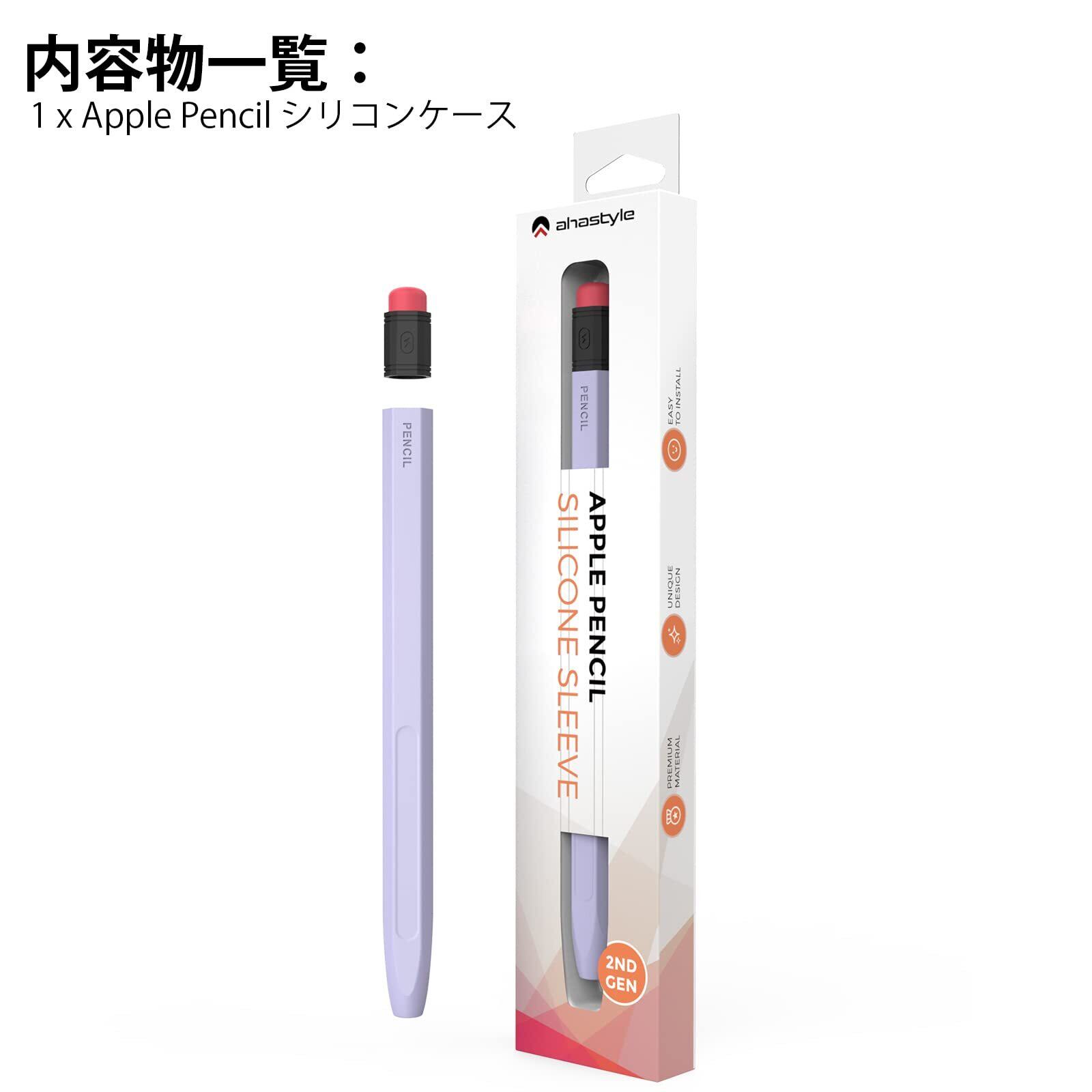 AhaStyle Apple Pencil Pro&Apple Pencil 第二世代用シリコン保護ケース 鉛筆レトロデザイン 柔らかなシリコン材質 Apple Pencil Pro&Apple Pencil 第二世代のみに適用 ワイヤレス充電対応 (ラベンダー)