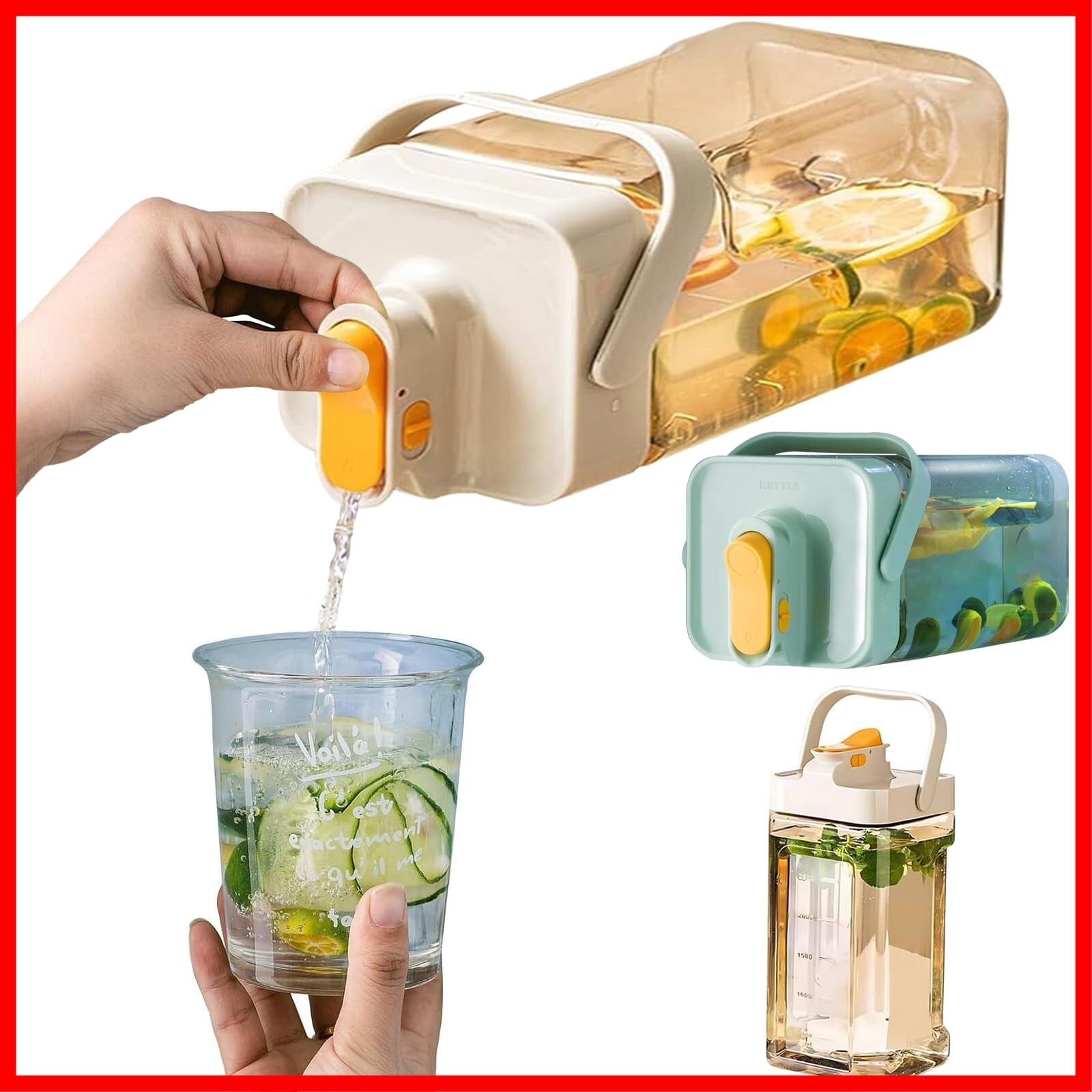 【ハンドルデザイン・ボトル溝デザイン】ドリンクサーバー ハンドルデザインなので、カバンに入れずに持ち運びやすく、注ぎやすいです。 溝のデザインにより、手の滑りを気にせずに水が注ぎやすくなります。
