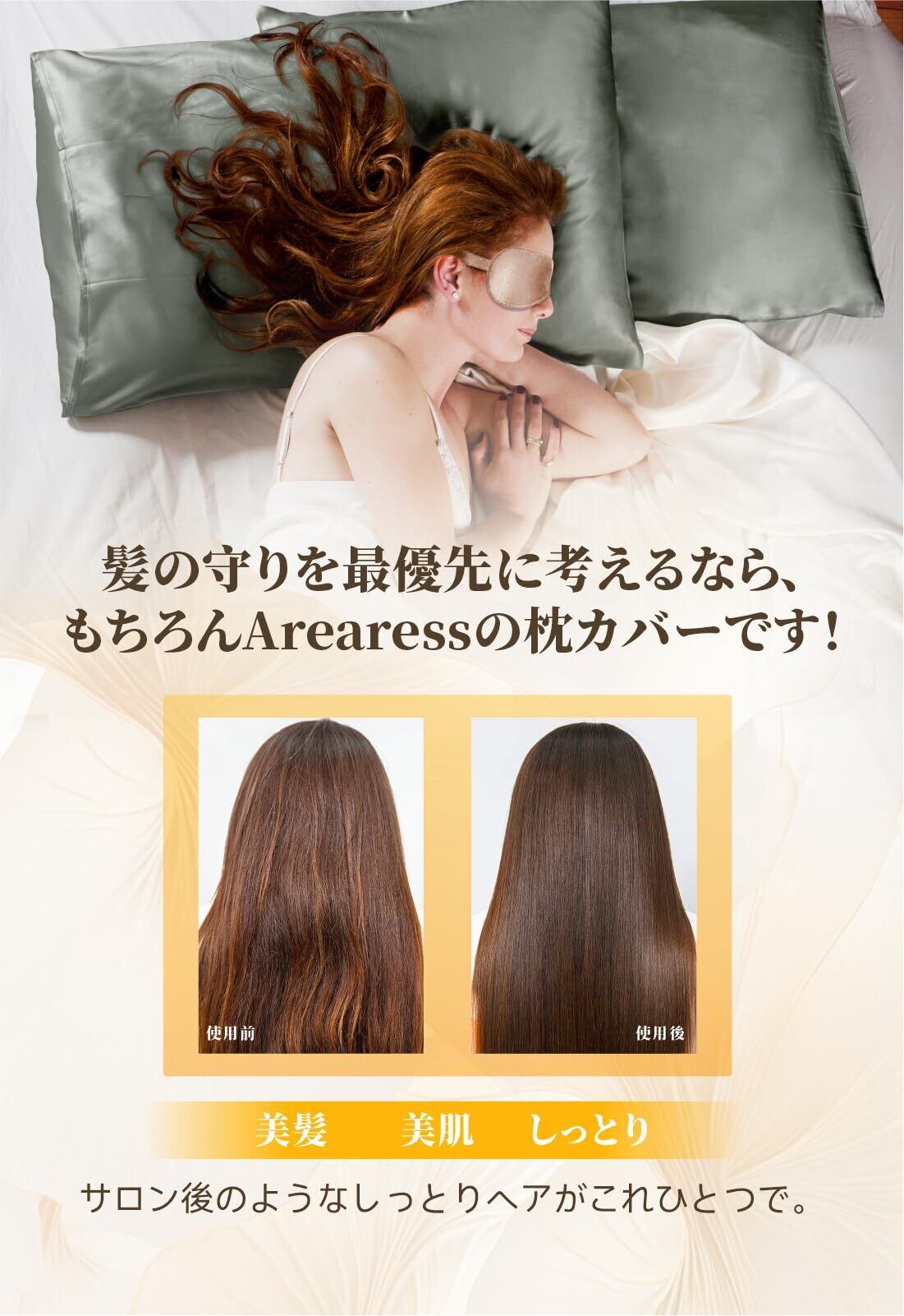まくらカバー・美容&美髪:Arearessの枕カバーは髪に天然のうるおいを与えます。乾燥や刺激から髪をやさしく守れます!そして、優れたの生地は皮膚に最も近い成分で、肌に刺激を与えることがほとんどなく、敏感肌の方にもご安心に利用できる高品質カバーでございます。