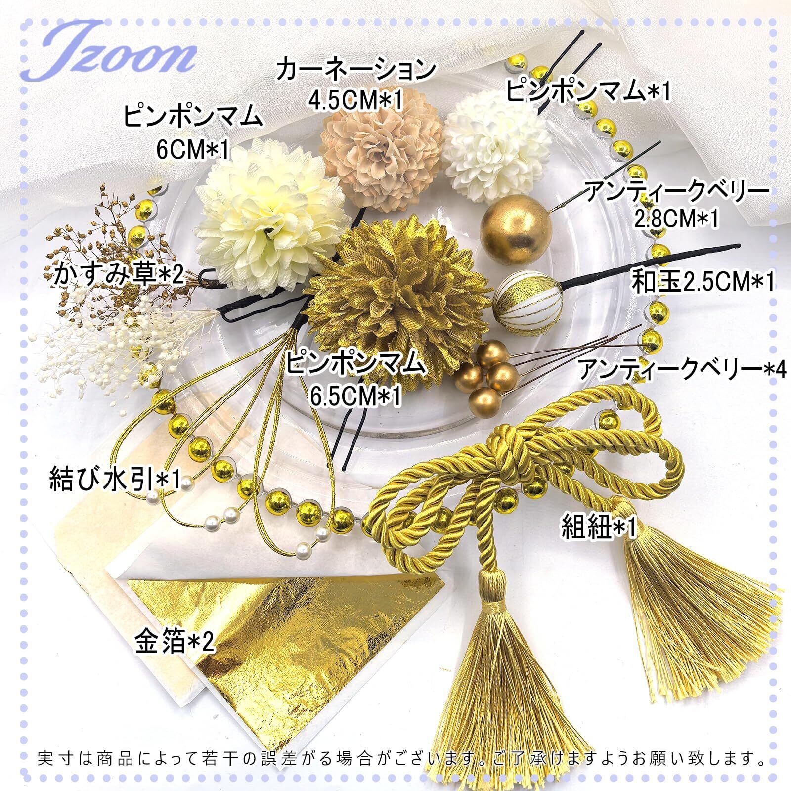 【選び抜かれた素材】高品質のダミーフラワーと結び水引、和玉とアンティークベリーを装飾に使用しています。流蘇は動きを増し、丁寧な手作業も示しています。耐久性が高く、金箔の光沢度があります。その美しさを長時間存在することができます。