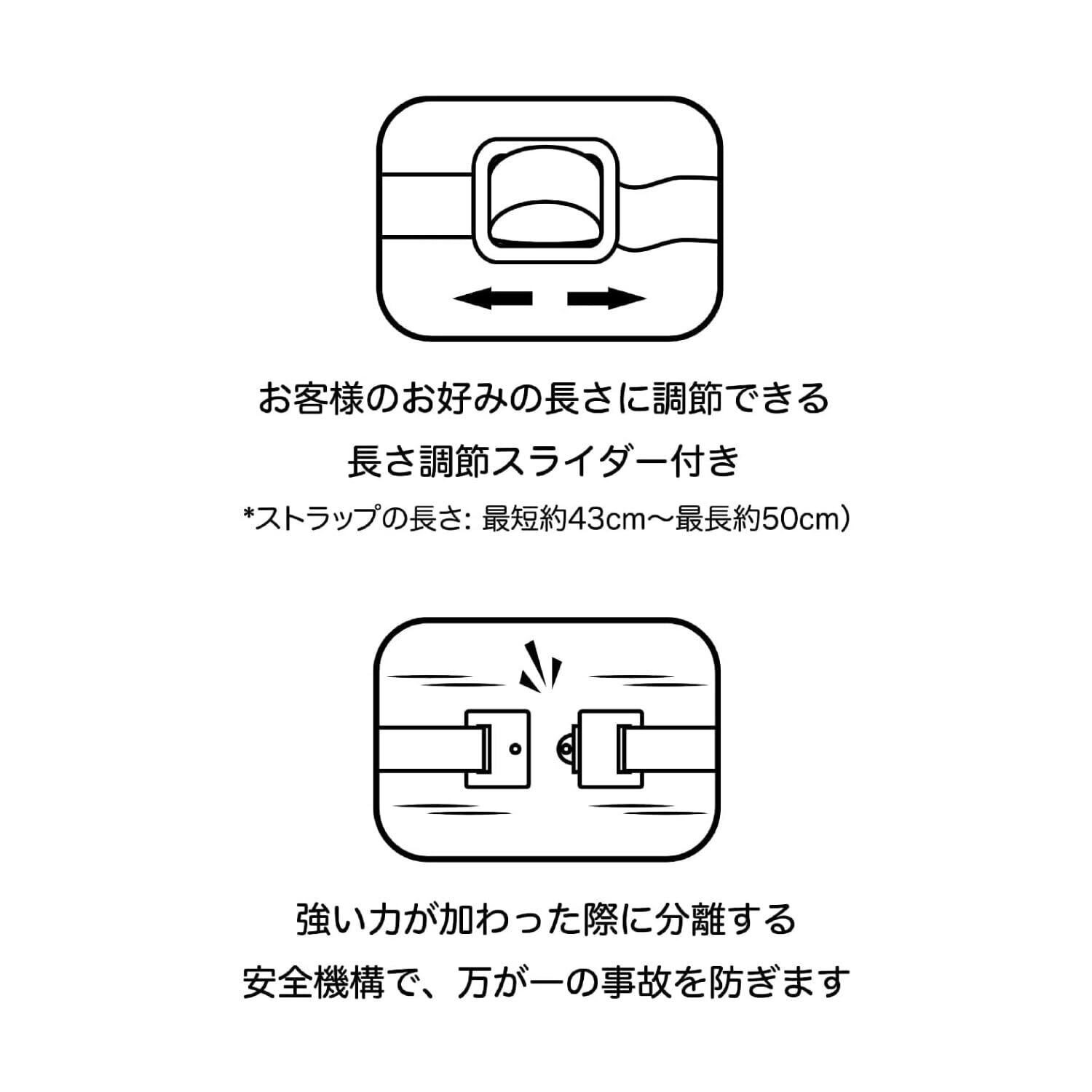 ストラップの長さは約43cm~50cmの間で調節可能。