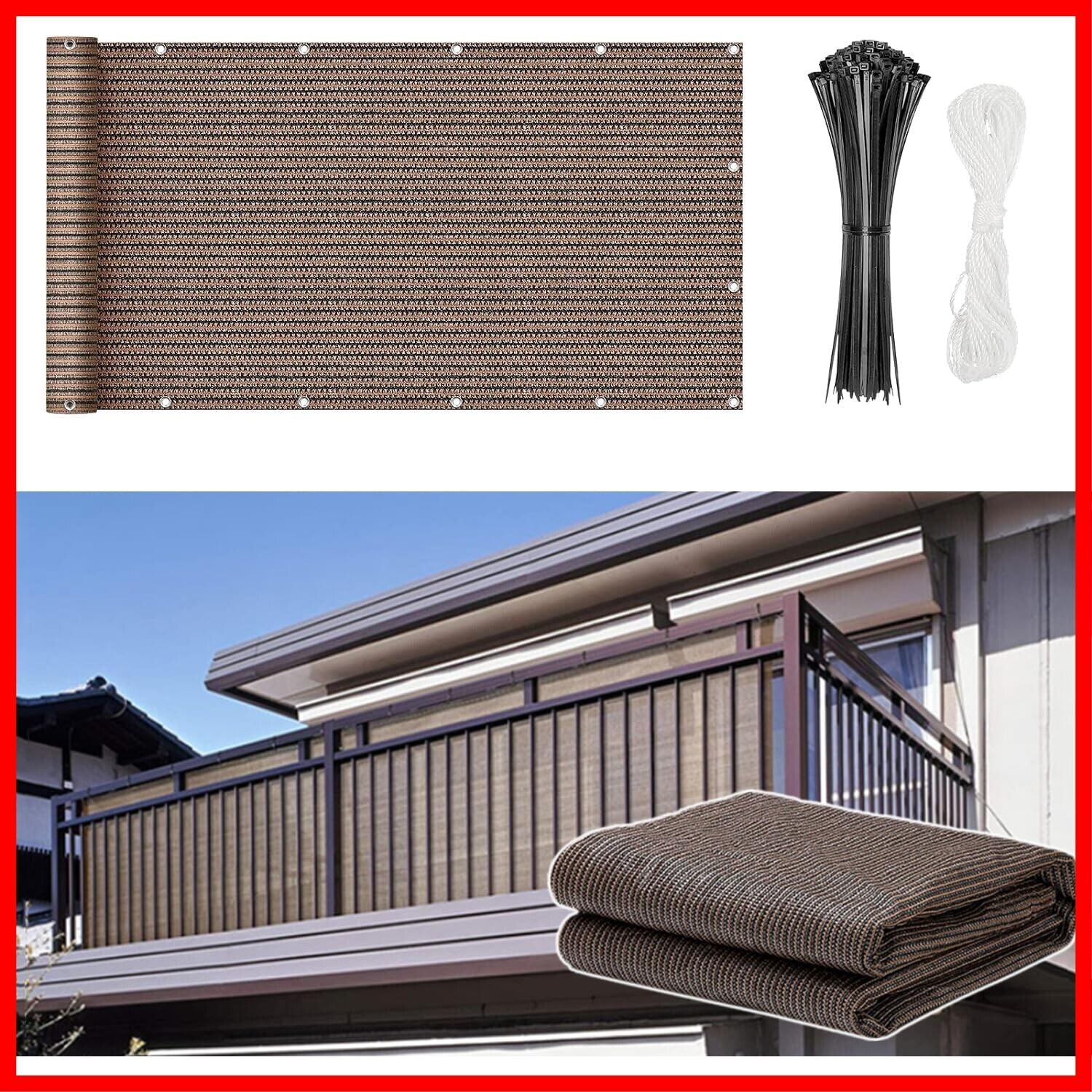 ベランダ 目隠し ベランダ目隠し シェード オーニング 高密度ポリエチレン 濃い色で目隠しバルコニーシェード 強度UP UVカット 風通し良い プライバシー保護 日除けシェード モカ色 遮光ネット 家 窓 マンション (モカ, 600x100cm) | hananoki